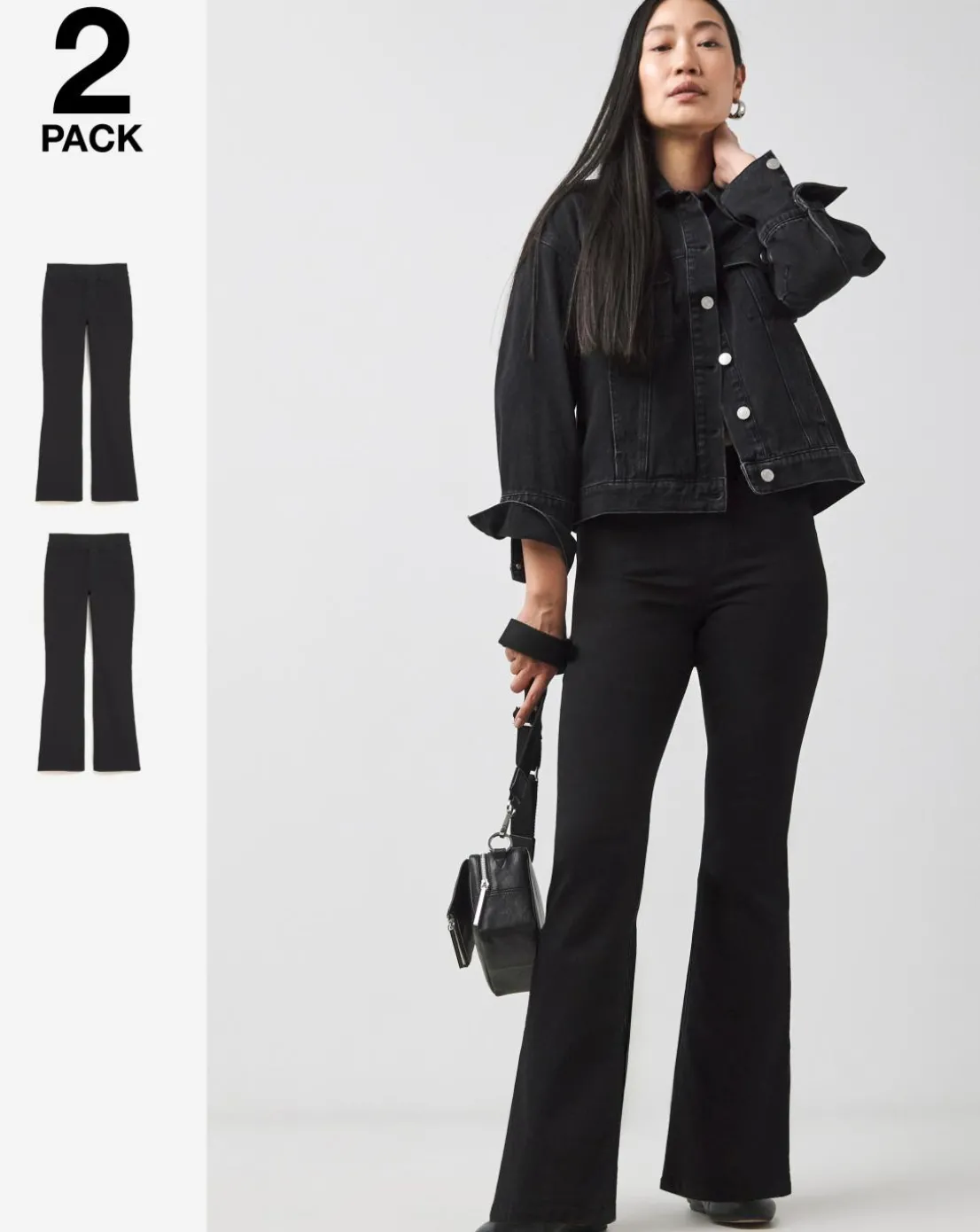 Now in a 2 pack, our bootcut jeggings. Experience ultimate style and comfort as you pull on these gorgeous bootcut jeggings. Designed specifically to fit perfectly around the waist and hips whilst keeping the well-loved, super stretchy and comfortable fabric that promise to hug your curves in all the right places. The bootcut shape flatters your silhouette while the elasticated waistband ensures maximum comfort.