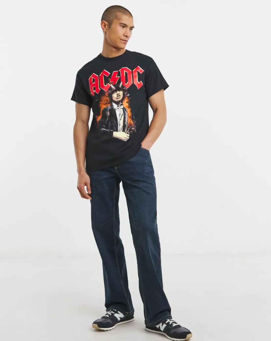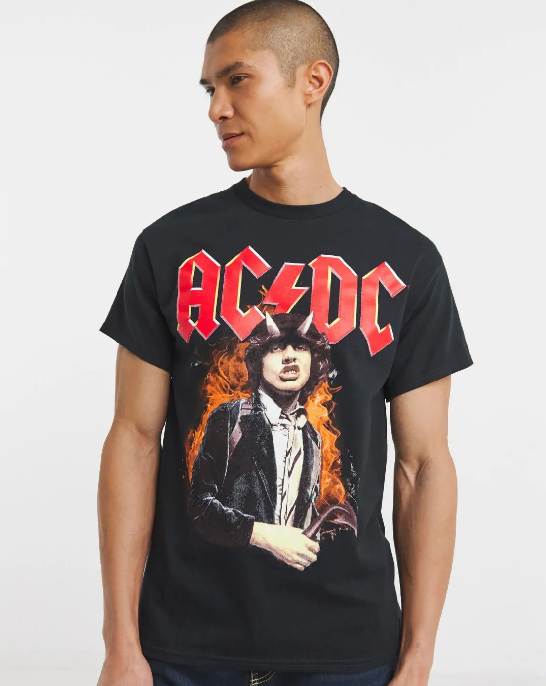 This ACDC graphic band tshirt is the perfect addition to any music lover’s wardrobe. This tshirt offers a comfortable fit for all day wear wethere youre at a concert or hanging out with friends. Featuring a bold graphic of the iconic ACDC logo this tshirt pays homage to the legendary rock band.