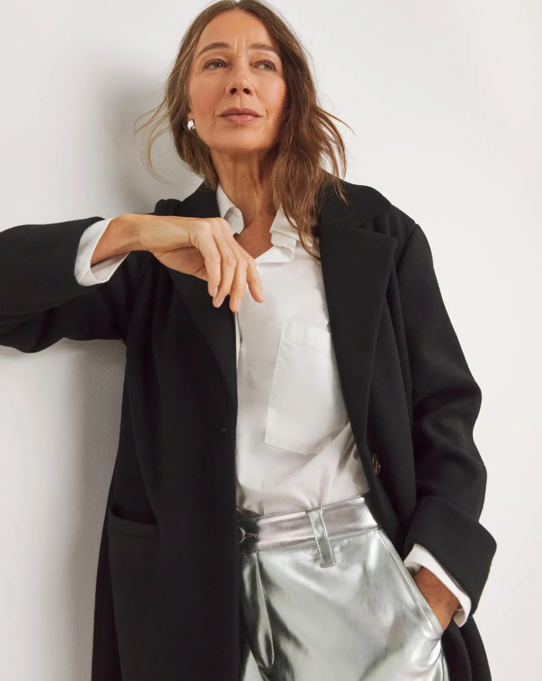 Our new Longline Coat is the perfect sophisticated throw over coat this season. Featuring soft fabric, front welt pockets, a formal collar, a button up front and lined. Easy to dress up or down, for whatever the occasion.