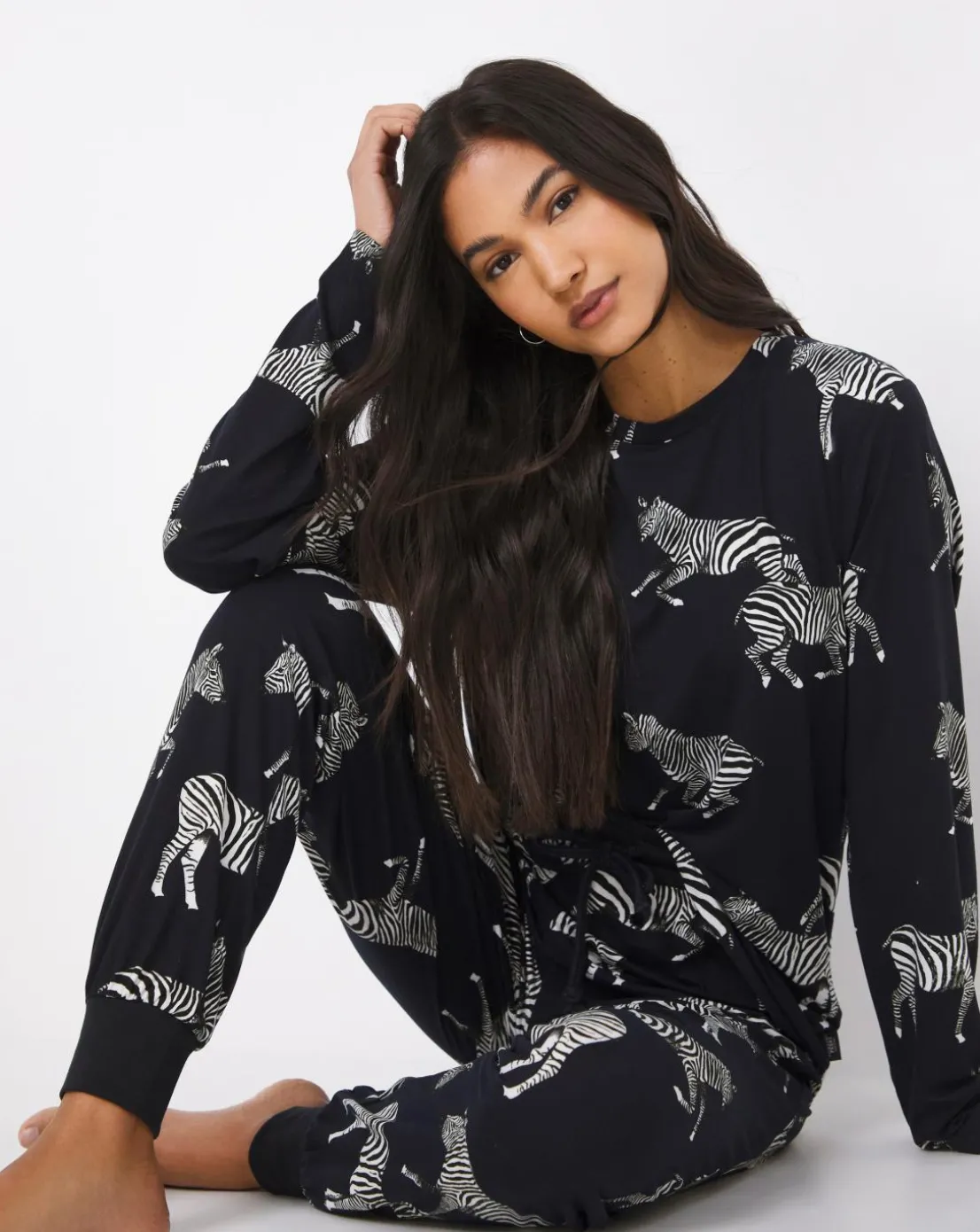 Chelsea Peers Jersey Zebra Print Crew Pyjama Set