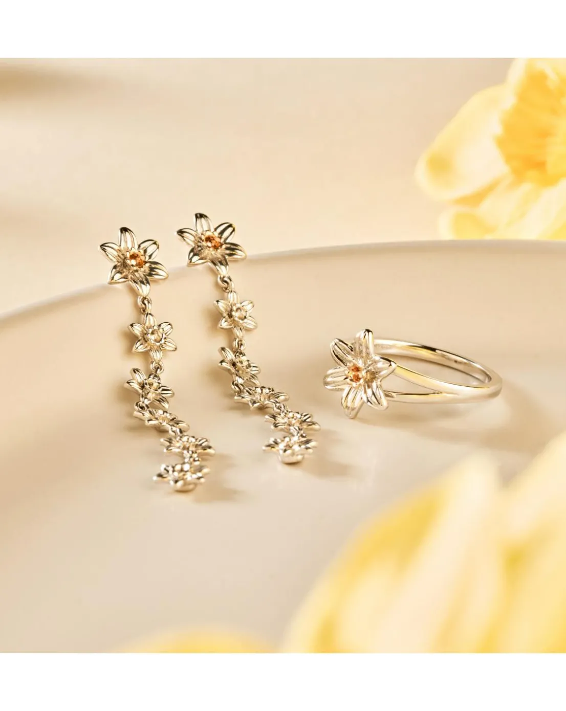 - Nature’s Wonder Sterling Silver Daffodil Drop-Hoop Earrings