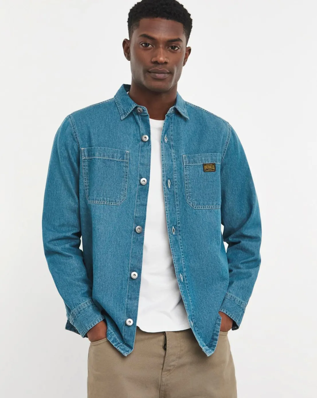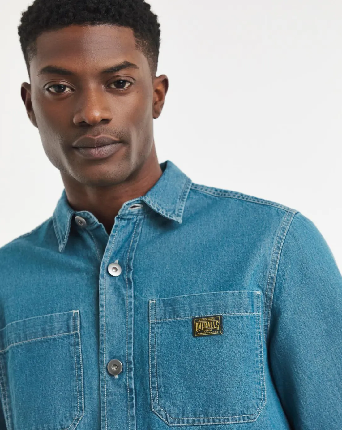 The Jacamo Double Pocket Denim Overshirt in Midwash.
