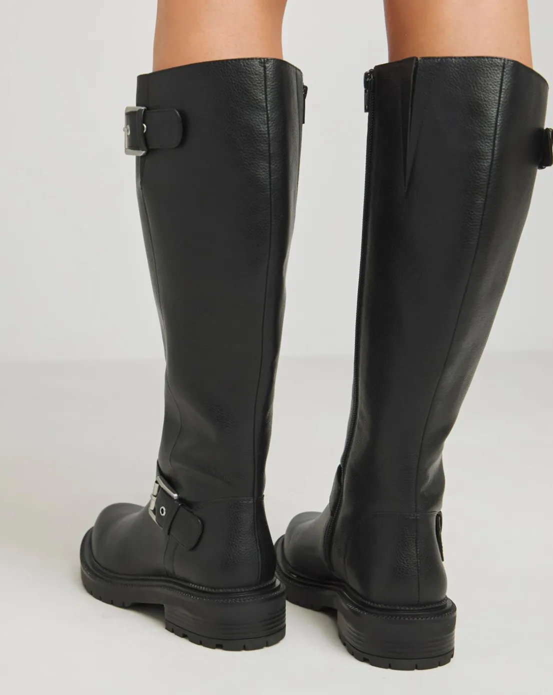 Eden Buckle Detail Knee High Boots Extra Wide EEE Fit Curvy Calf