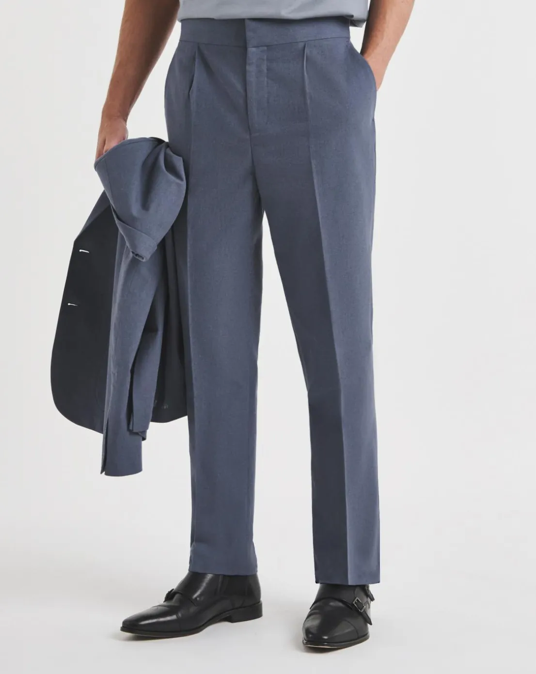 Crafted with precision from premium fabric for a breathable, lightweight feel Flat front design and tapered fit for a sharp, modern silhouette Cornflower blue hue adds a fresh, contemporary twist to tailored dressing Pair with the matching blazer for a coordinated, standout look