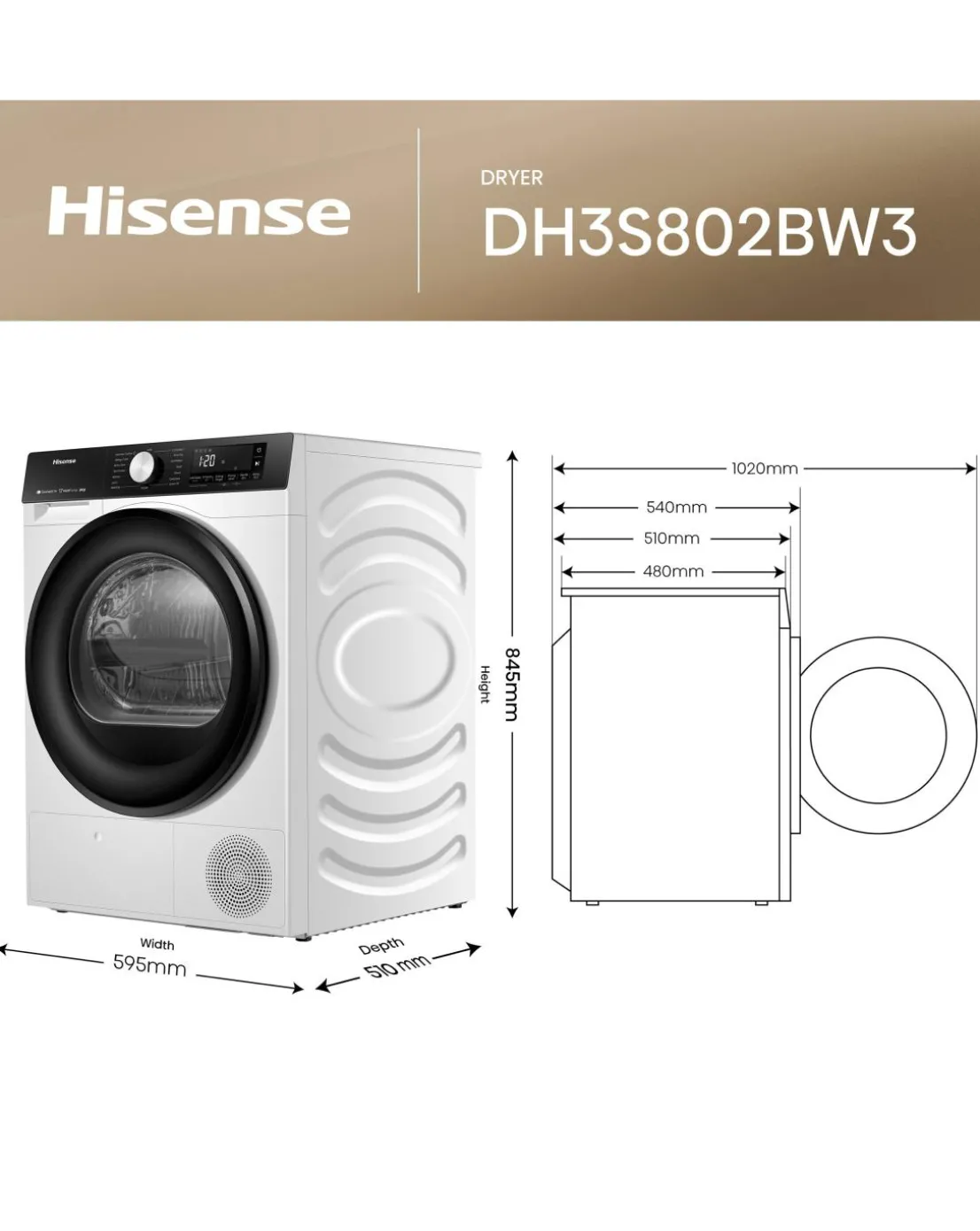 Be the first to review “Hisense 3S Series DH3S802BW3 WiFi-enabled 8kg Heat Pump Tumble Dryer – White” Cancel reply