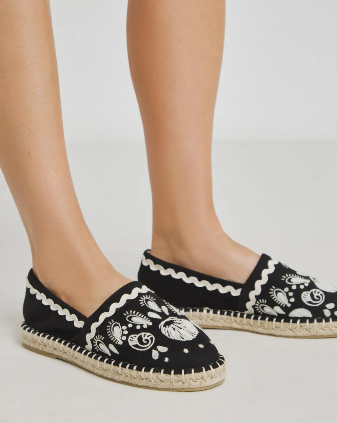 These espadrilles are perfect for adding some sunshine to any outfit. Embroidered detailing, easy slip on style & flat raffia sole.