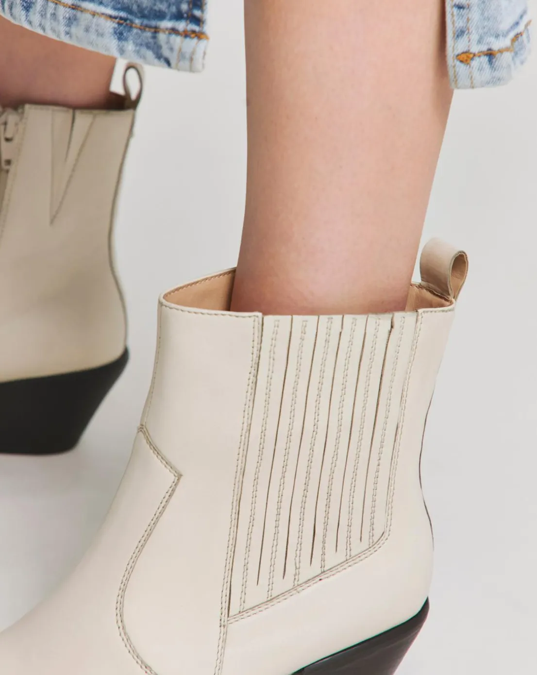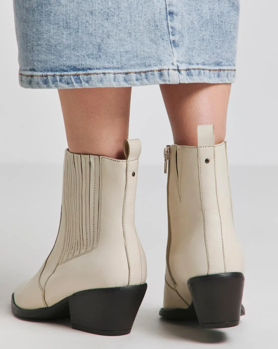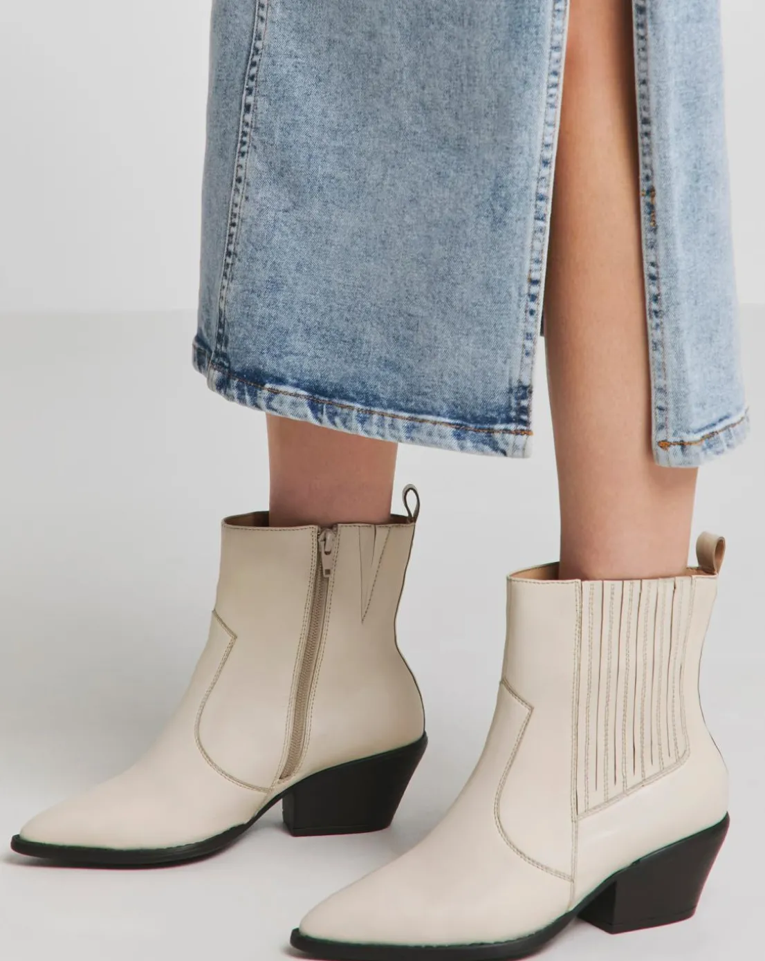 Jump into the western trend with these short cowboy boots. Their versatility makes them the perfect boot to pair with jeans or dresses. Genuine leather upper, elasticated gusset for comfort, pull tab for easy entry and western stitch detailing.