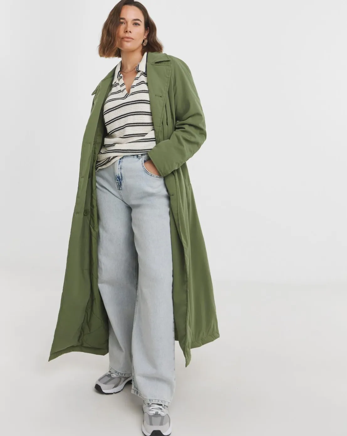 2 coats in 1, this reversible coat is a great throw on, that adds style and comfort to your wardrobe. Opt for a plain khaki, perfect for layering or a quilted design, that looks effortlessly fashionable. Featuring a light padding for extra warmth, double breasted front and an adjustable tie waist.