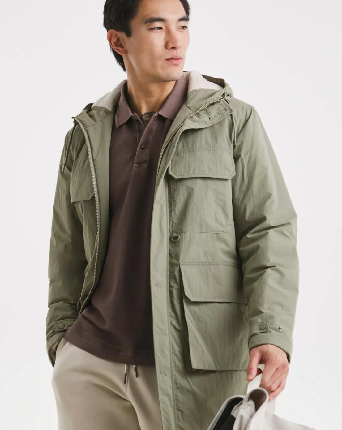 Stay dry and stylish with this lightweight, water-resistant parka. Perfect for unpredictable weather, its sleek design offers protection against rain without the bulk. The breathable, recycled polyamide makes it ideal for everyday wear, while the durable water repellent finish ensures you stay comfortable and dry all day long.