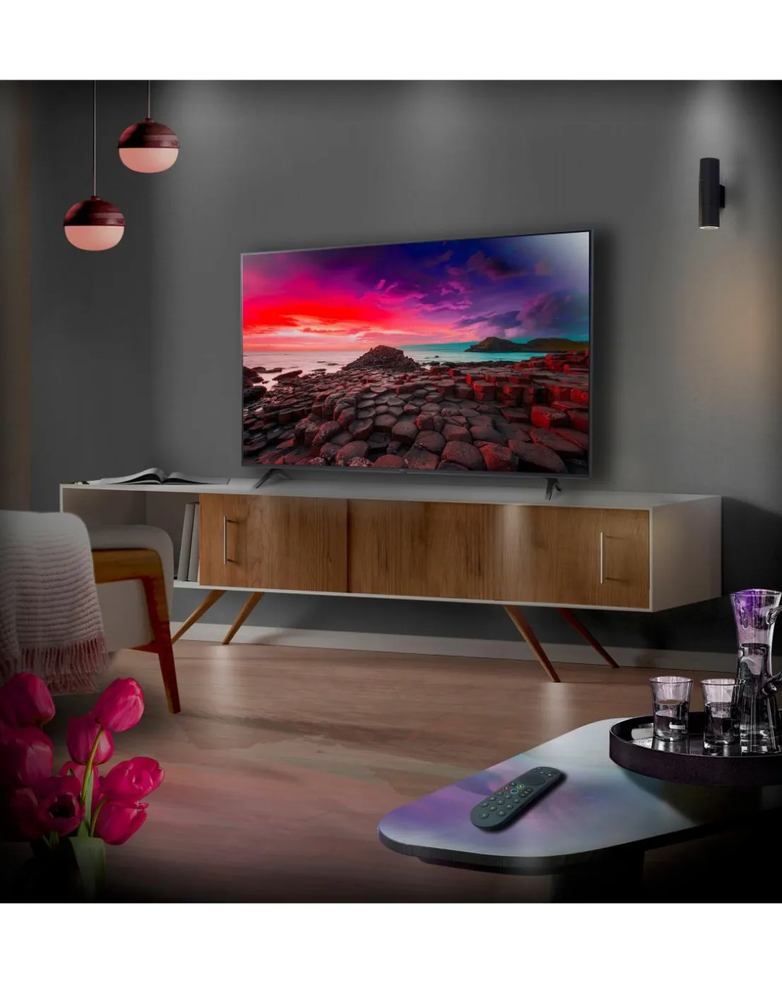 Experience vibrant picture quality in incredible detail with 4K Ultra HD resolution, bringing brilliant clarity. LG UT80 features the smart a5 AI Processor: the brain of the TV. Features supported include 4K Upscaling for sharp pictures, and AI Brightness Control, which uses sensors to intelligently adjust the brightness based on the ambient light in your room, for an optimal picture. Plus AI Sound Pro to upscale stereo sound into an immersive, virtual 9.1.2 channel surround sound experience. LG UT80 features webOS, LG’s smart platform which hosts a huge variety of the best streaming services including Freeview Play, NOW, Netflix, Prime Video, Disney Plus and much more while making browsing and searching for what to watch completely hassle-free. If you want to enjoy content mirrored from your smartphone you can do so easily with support for AirPlay 2 and Chromecast. The smart platform is controlled with the LG Magic Remote, which includes voice control for ultimate convenience. A beautifully crafted TV to enhance any room.Enjoy movies just as the director intended thanks to Filmmaker Mode and HDR. Tweak your settings with ease to ensure the best gaming experience with the Game Optimiser, and ensure the most responsive gameplay with ALLM putting you into the best game mode automatically when powering up your console.