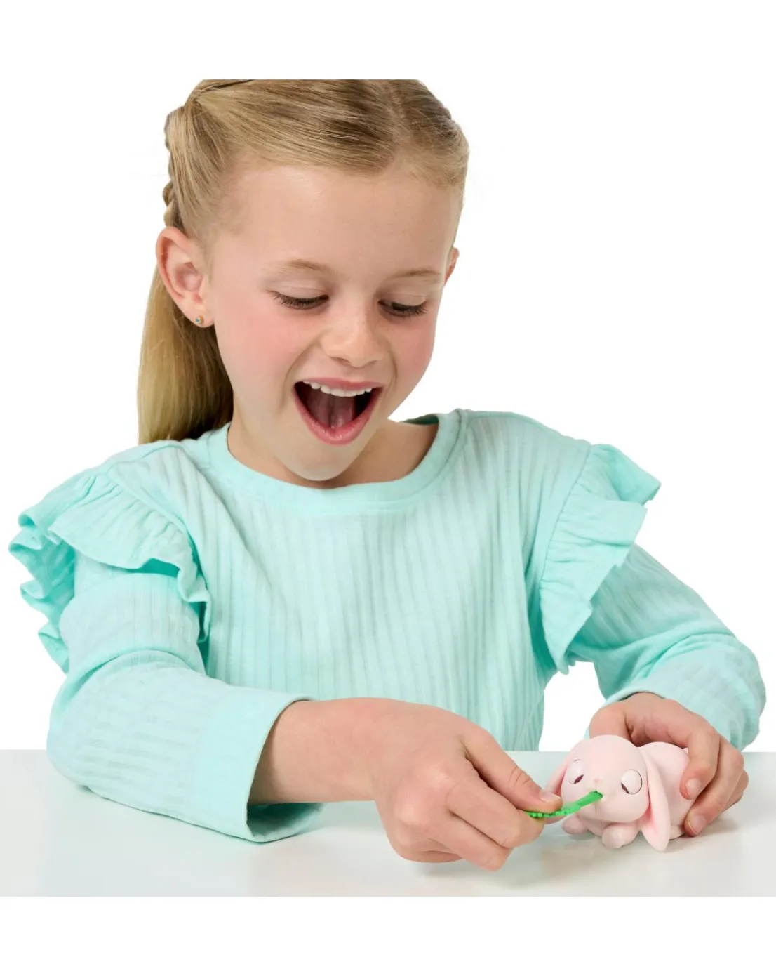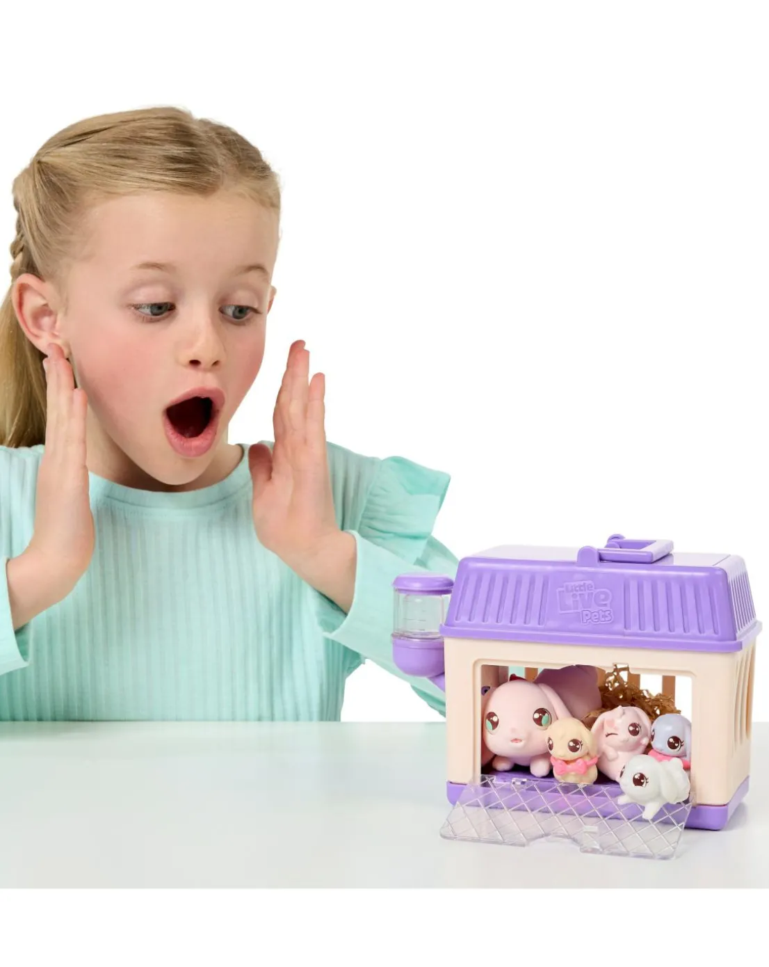 Little Live Pets Mama Surprise Minis takes caring for your pet to a whole new level. Experience the joy of nurturing your Mama and watch as she has 2, 3, or 4 surprise baby bunnies! First, make a cosy bed for Mama and the babies with the straw. Fill the water bottle in the hutch and wait. Your child will be amazed as they see the bottle empty and then watch the baby bunnies being revealed! Each baby arrives with its own unique pose and personality, adding to the excitement of discovering which adorable baby pets are joining the family. And the best part? This is a repeat playset, so the surprise and delight of welcoming new babies can happen again and again! Complete the birth certificate to see which babies you discover. The excitement of Mama Surprise Minis never ends!