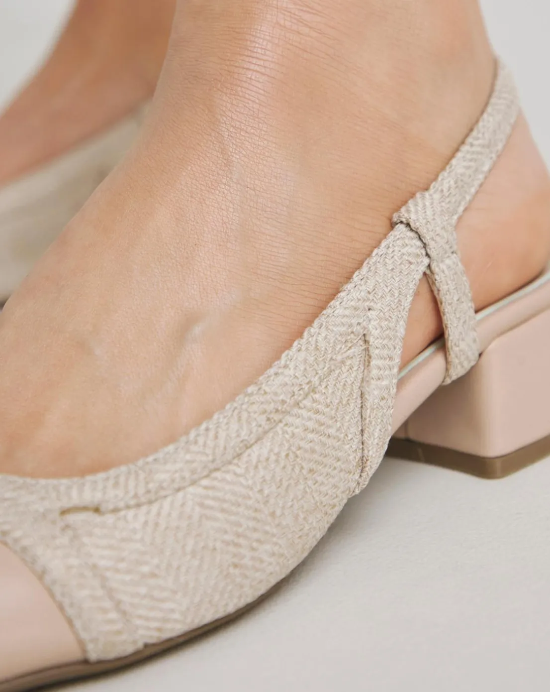 Put your best foot forward with these low heeled slingback shoes featuring a block heel, mixed material upper for a sleek design and adjustable slingback strap.