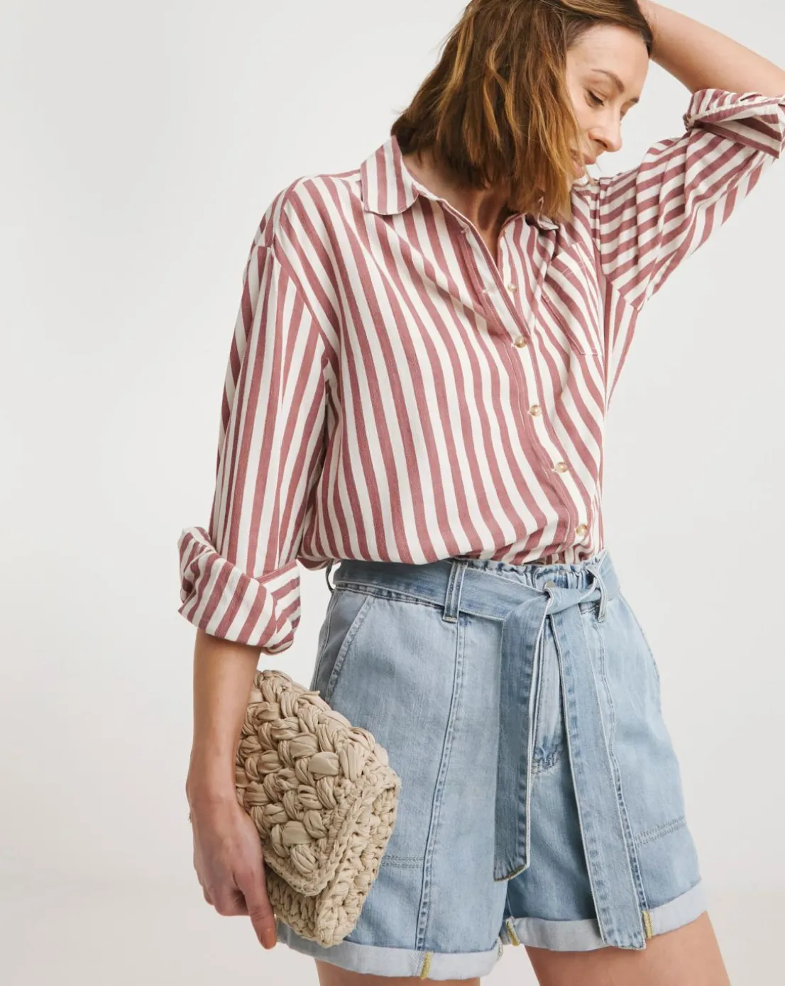 Every summertime wardrobe needs our utility cargo denim shorts. In a high-waisted fit and ultra-flattering shape, these shorts guarantee all-day comfort and easy movement in warmer weather.