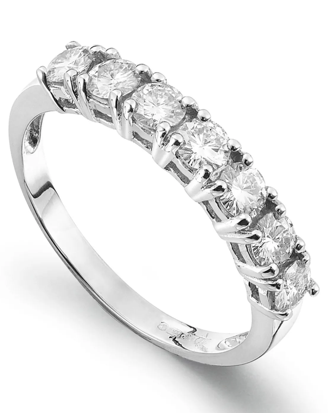 Moissanite Ladies 9 Carat Gold 1 Carat Half Eternity Ring. The 7 Stone 9 carat gold Eternity Ring symbolises everlasting love, making it the perfect gift for your special someone. Moissanite totalling 0.50ct set into this classic hallmarked claw setting. Creating a traditional and elegant ring ideal for a birthday or anniversary. Available in sizes H-Z comes complete with a branded deluxe double box and a certificate of authenticity.Choose yellow gold or white gold.