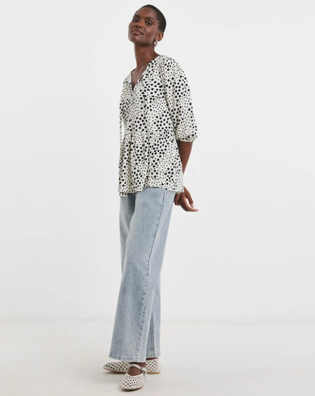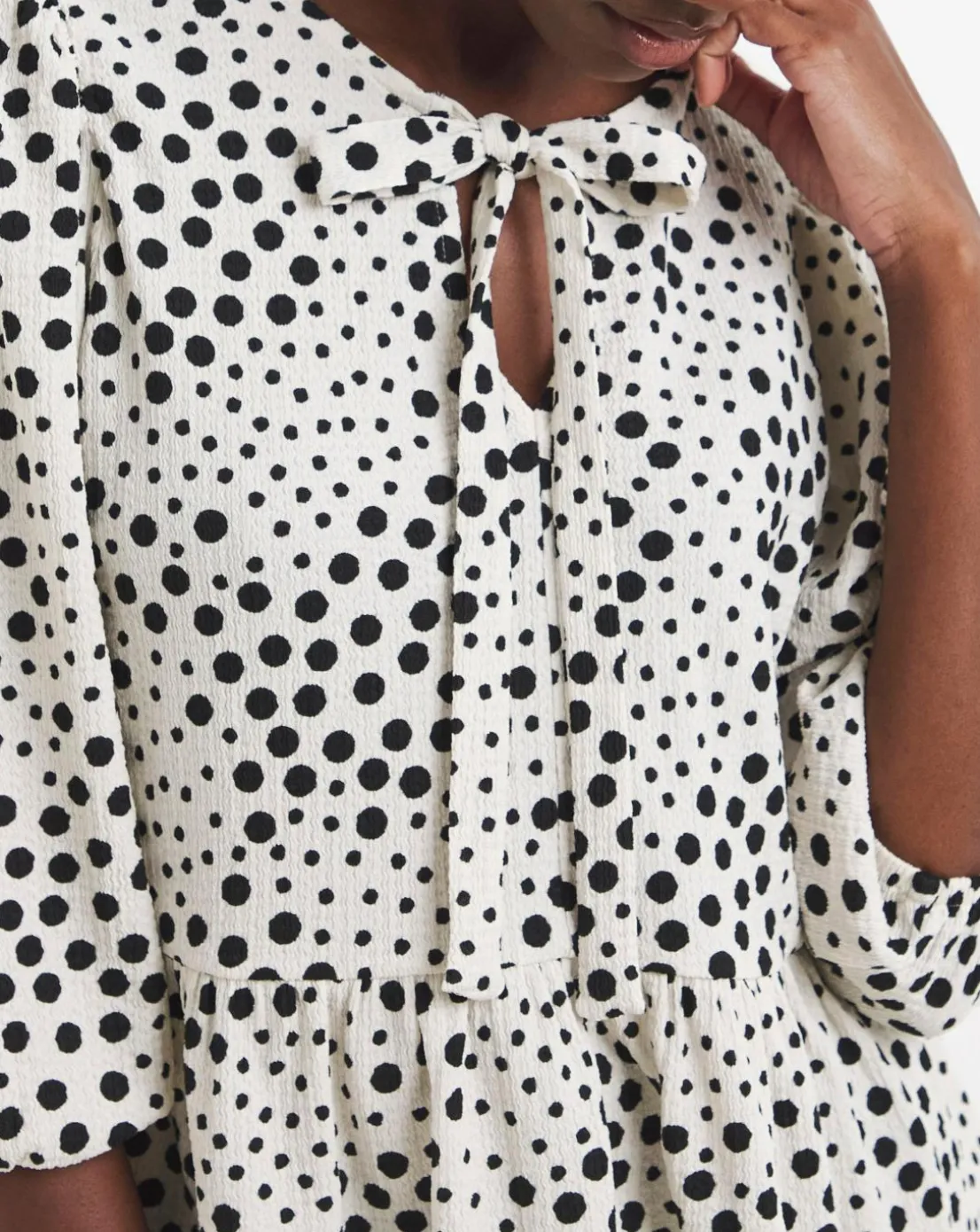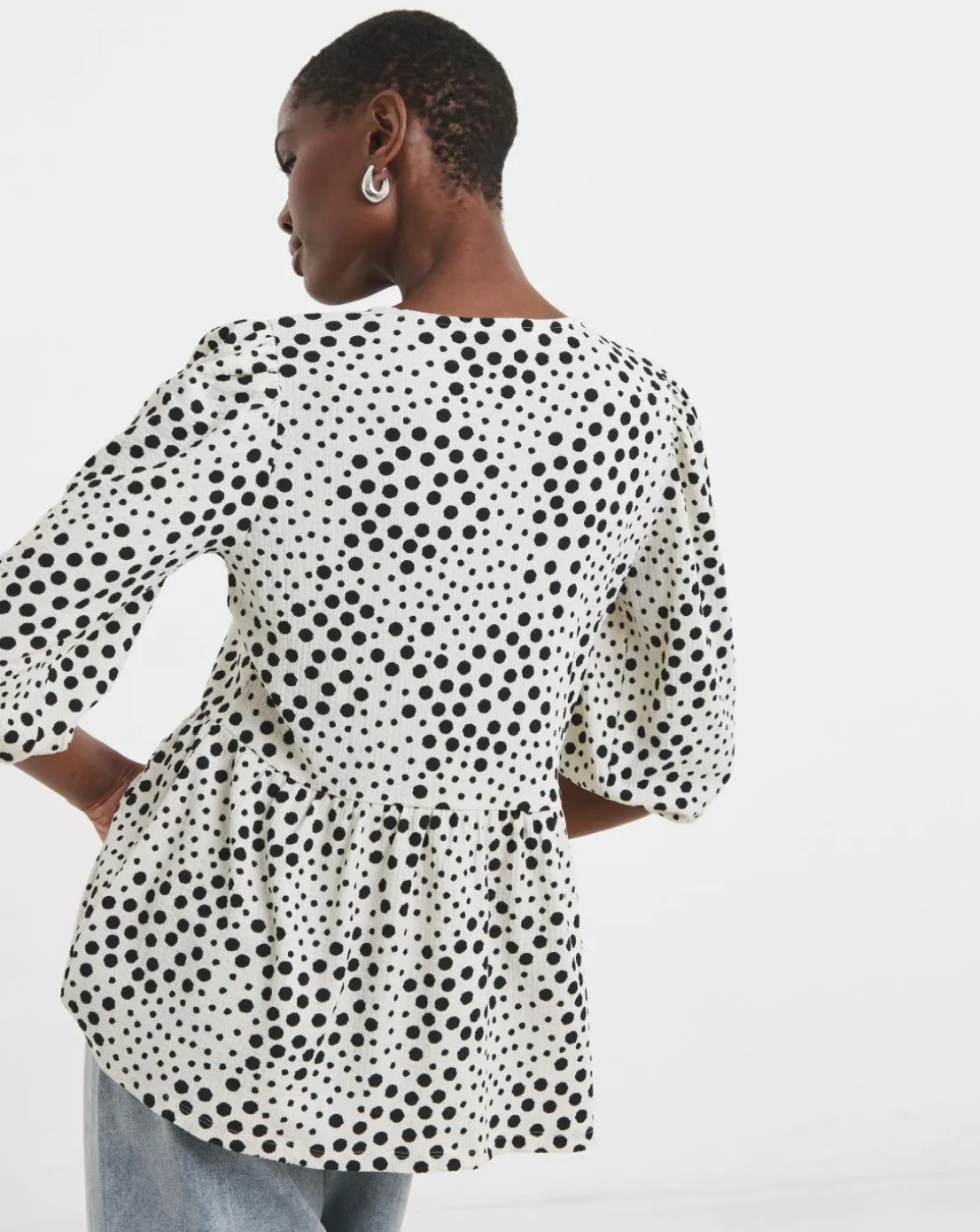 Be the first to review “Mono Print Bow Blouson Peplum Top” Cancel reply