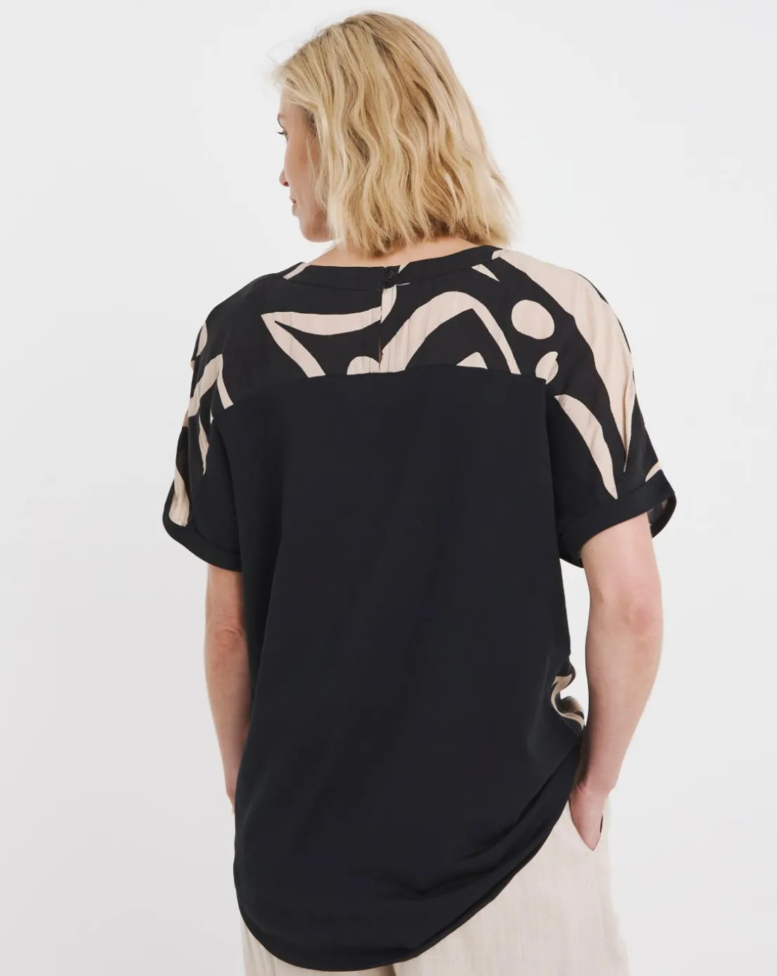 Our black woven front t-shirt is perfect for smart casual wear. It features a crew neck, short turned-up sleeves and a soft jersey back.