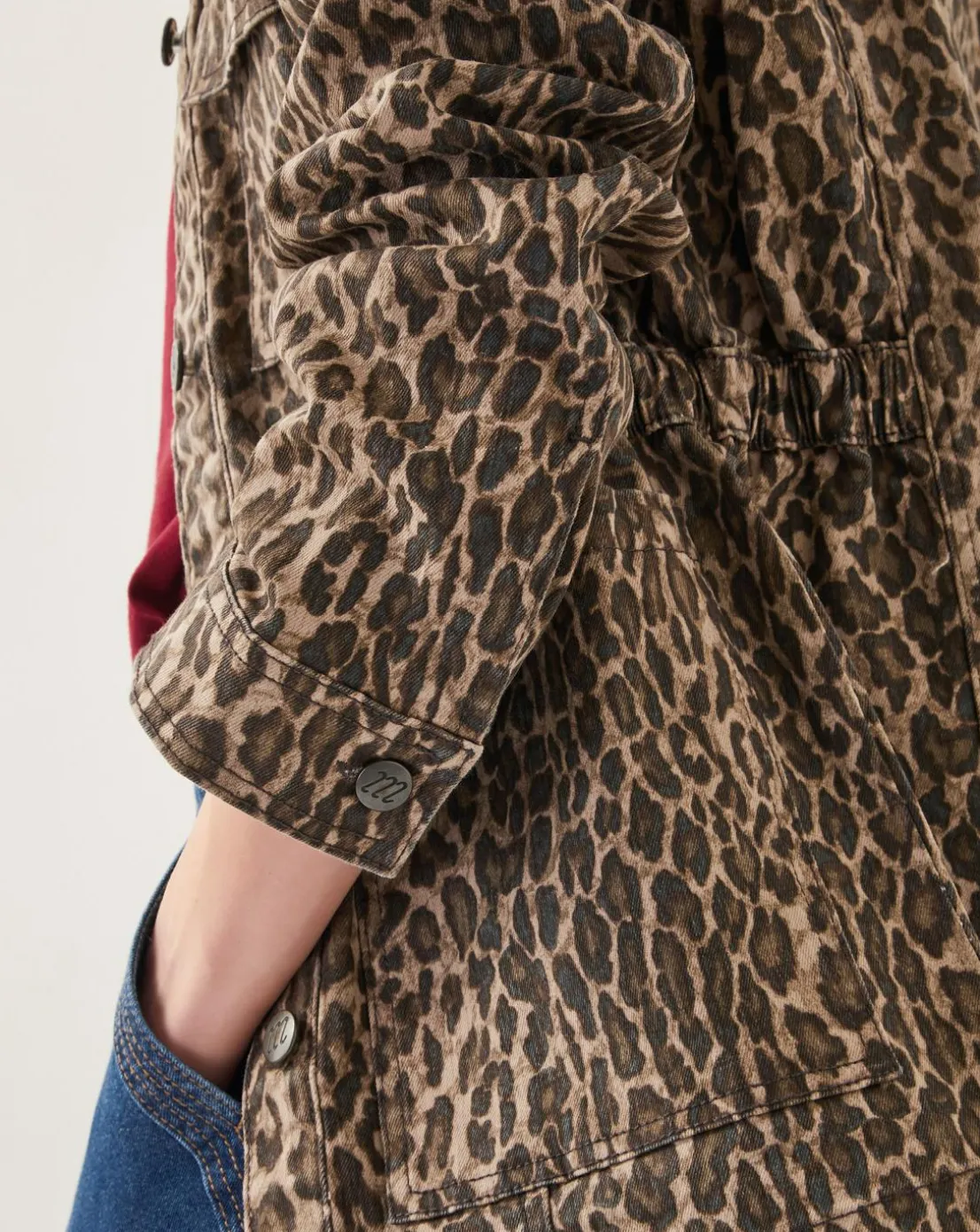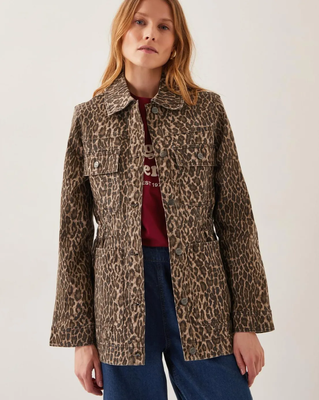 - Purrr. Designed in leopard print denim, this jacket features a classic collar, front button fastenings, utility-inspired pockets and a hem that falls past the hips. Create a cool, co-ordinated look with the Annie Leopard Print Straight Leg Jeans.