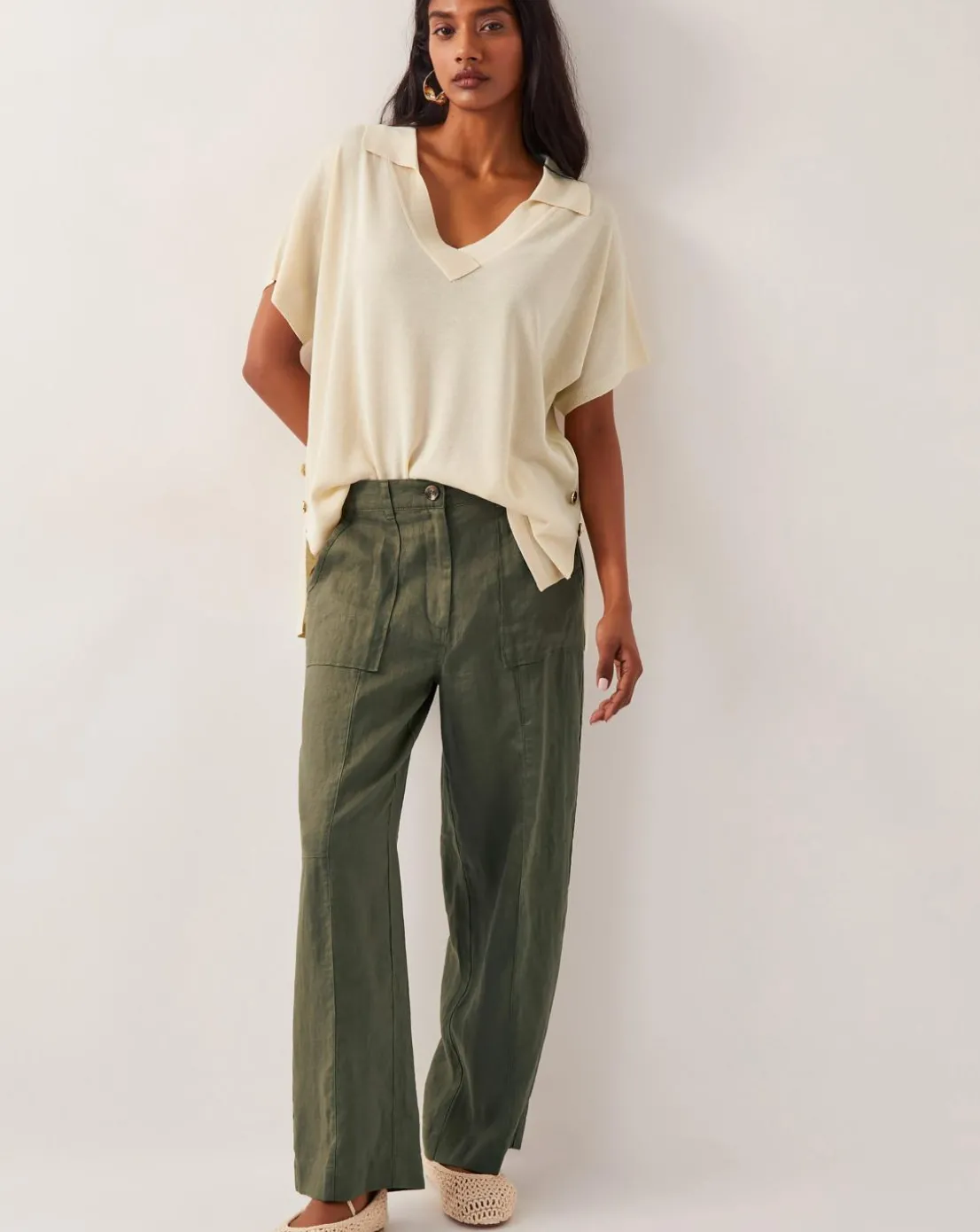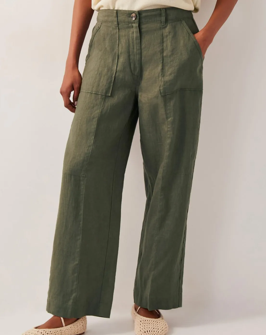 - It’s linen time, baby. Made from light, breathable linen fabric, these trousers are slung high on the waist with breezy wide legs to finish. Complete the look with a billowy blouse and your fave summer sandals.Note: This is the shorter version of this style! Also available in a regular length.
