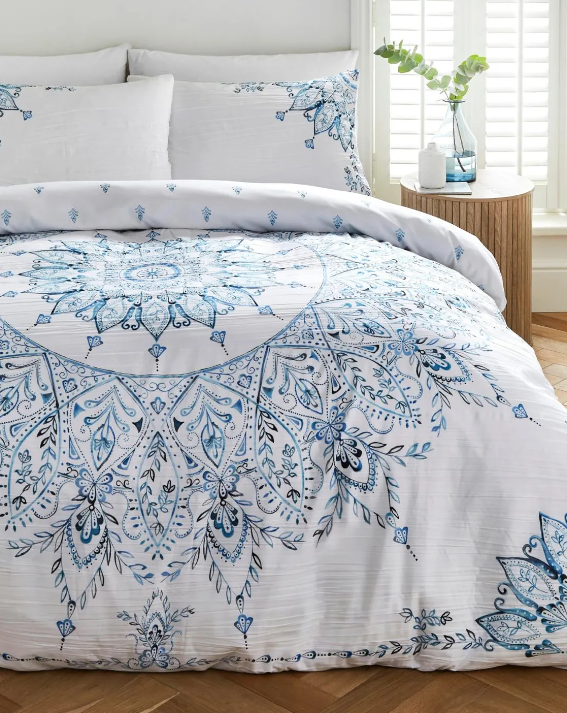 The Paisley duvet set features a placement tapestry print with a paisley design in crinkle fabric. The set includes 2x pillowcases (1x single) and 1x duvet cover.