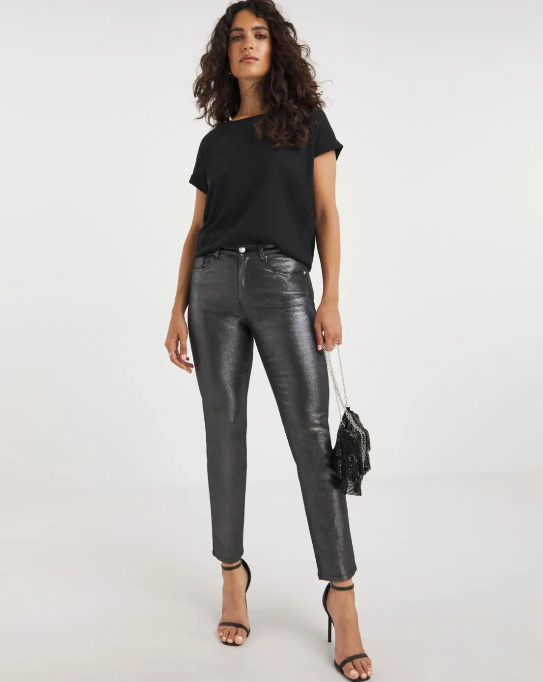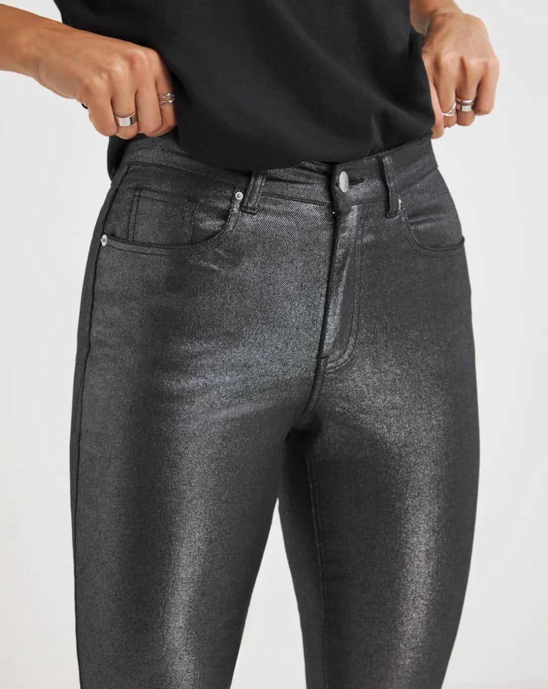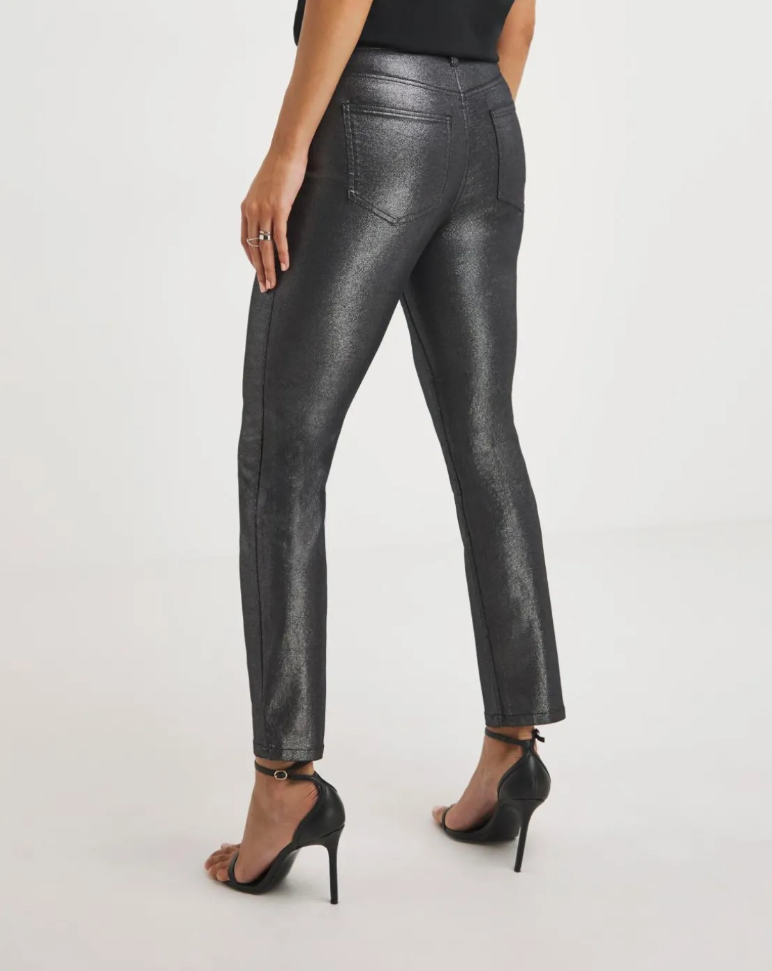 A firm wardrobe favourite thanks to their slim leg fit, designed with comfort in mind. Finished in a striking metallic tone, wear with tucked-in tops and bold jewellery for a statement-making entry.