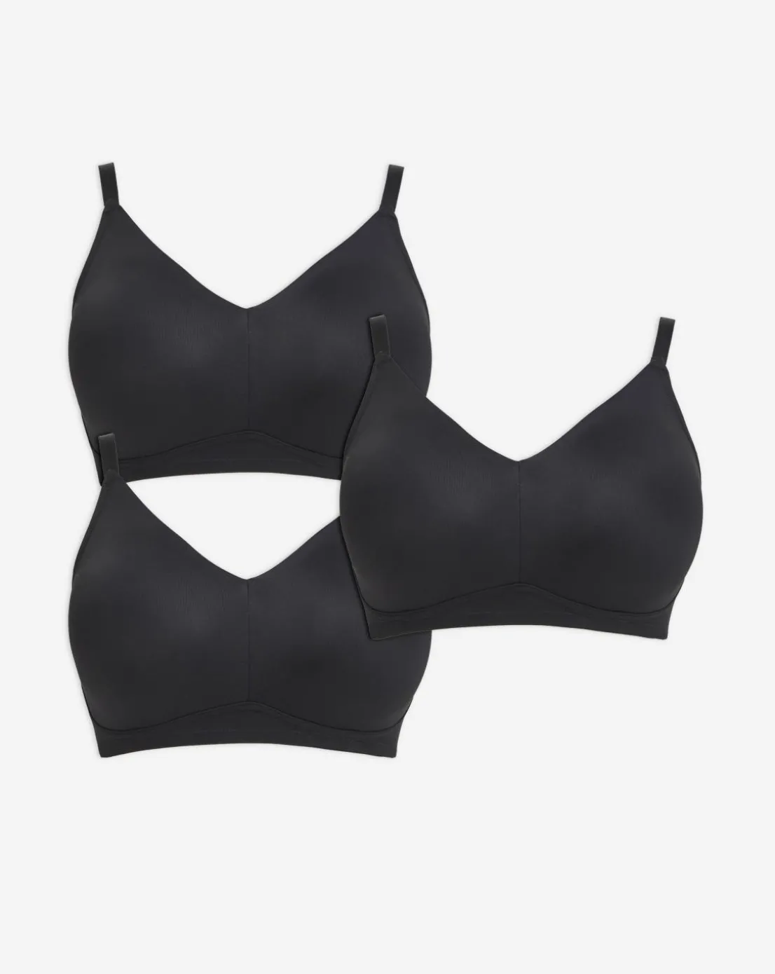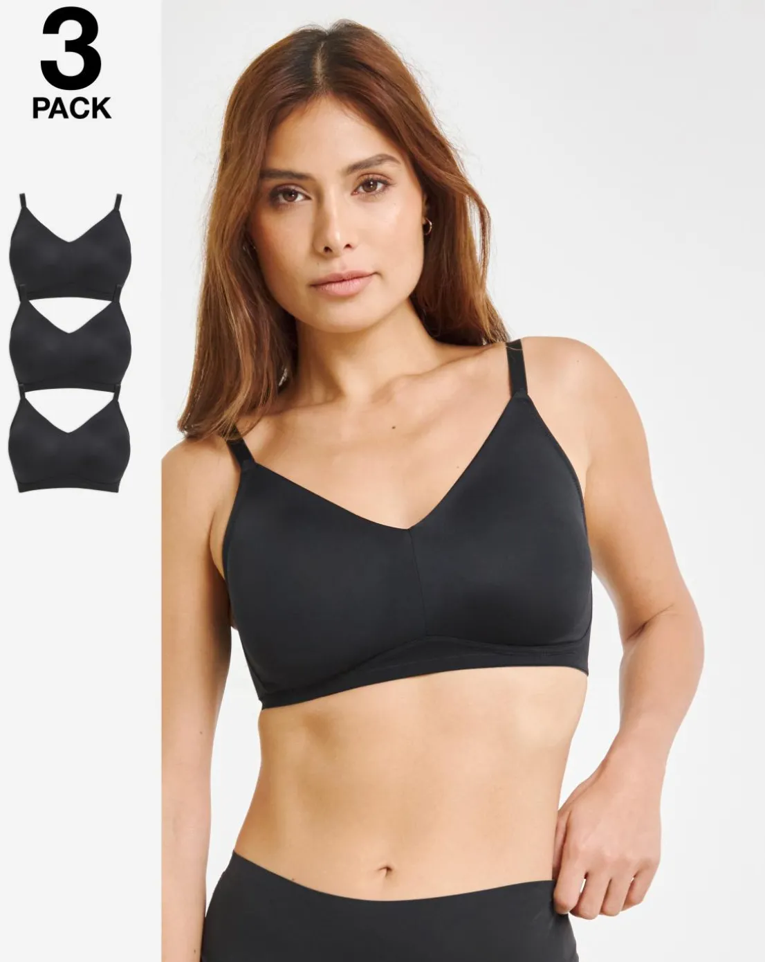 Updated for this season, our Claire range is better than ever and comes in both a cotton and micro fabric version for essential everyday comfort. This micro value pack of Claire non wired full cup bras has an updated easy shape with improved fit and new softer microfiber fabric that gives a seamless and smoothing look. The full cups are non-padded and non-wired to provide flexibility and a natural silhouette with plenty of support. Finished with adjustable straps and hook-and-eye fastening. This multipack contains x3 black Claire Micro non-wired full cup bras. Shop the rest of the new updated Claire range for more colours and styles.