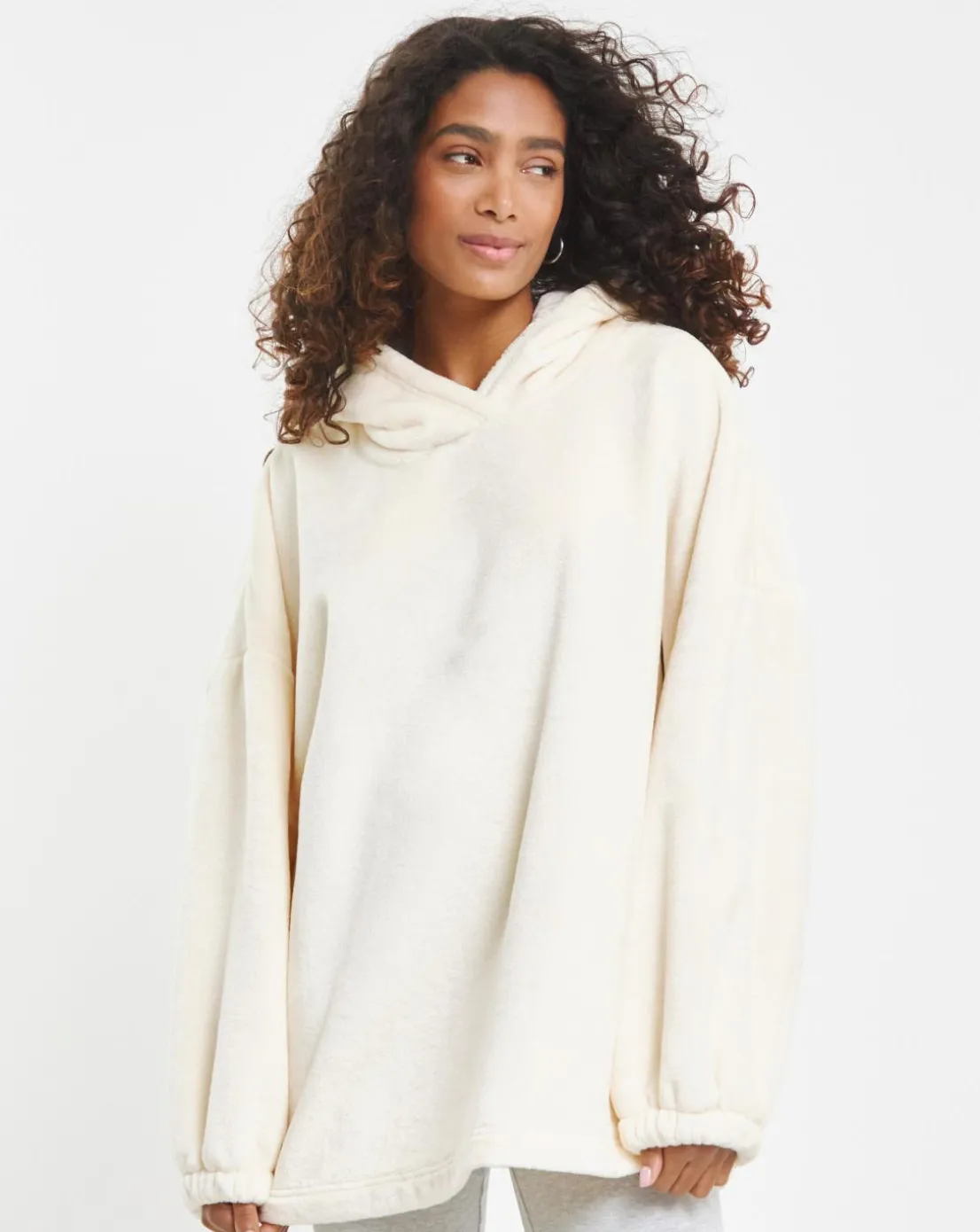 Introducing your new favourite loungewear hoodie. Featuring a gorgeous cream, superosft fleece fabric and trendy shape, this hoodie is the perfect layering piece this season.