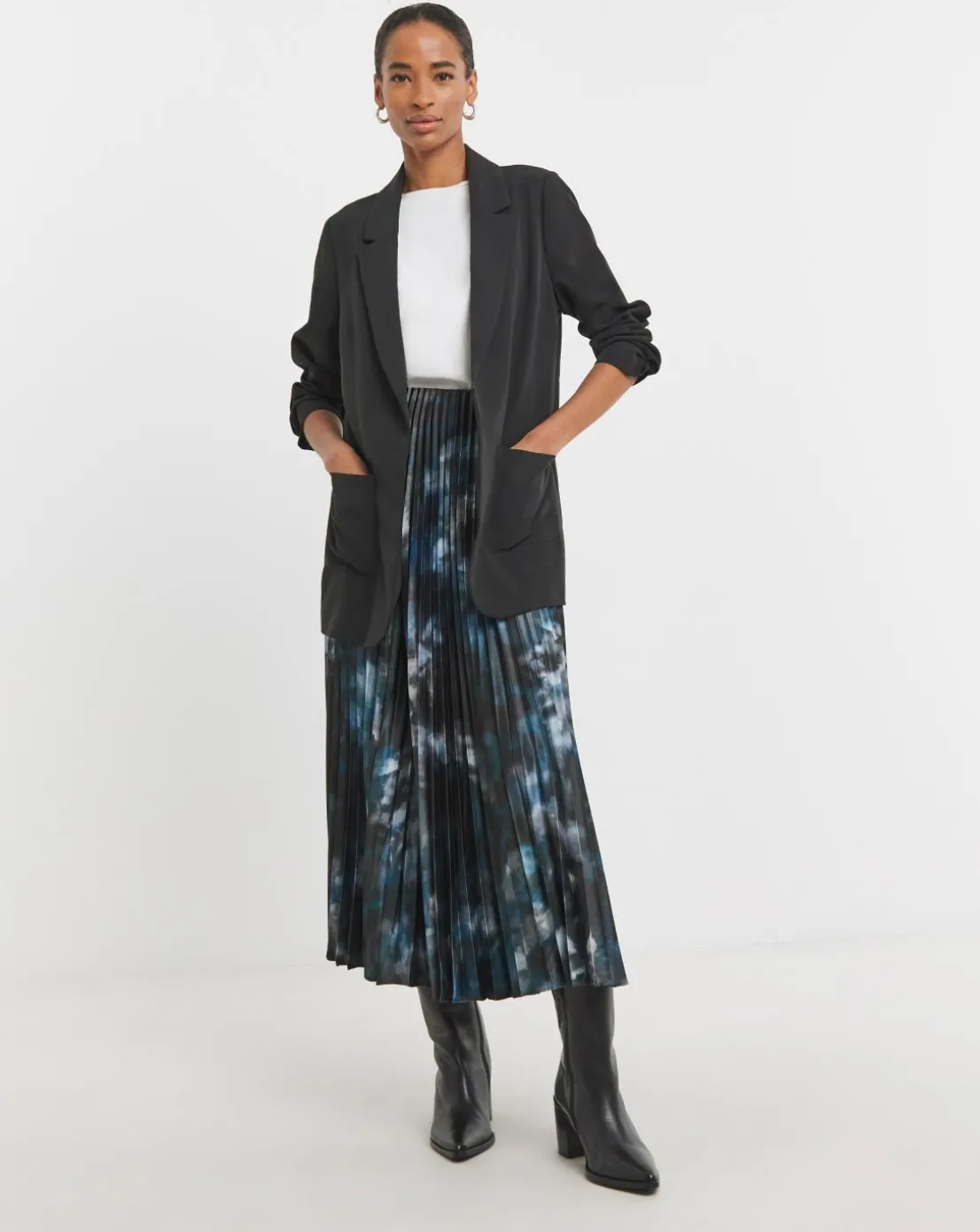 Our pleated maxi skirt in this beautiful all over print is perfect for party season. With an elasticated waist for easy pull on, it’s a comfortable, stylish piece. Simply style with a t-shirt or blouse for day to night.