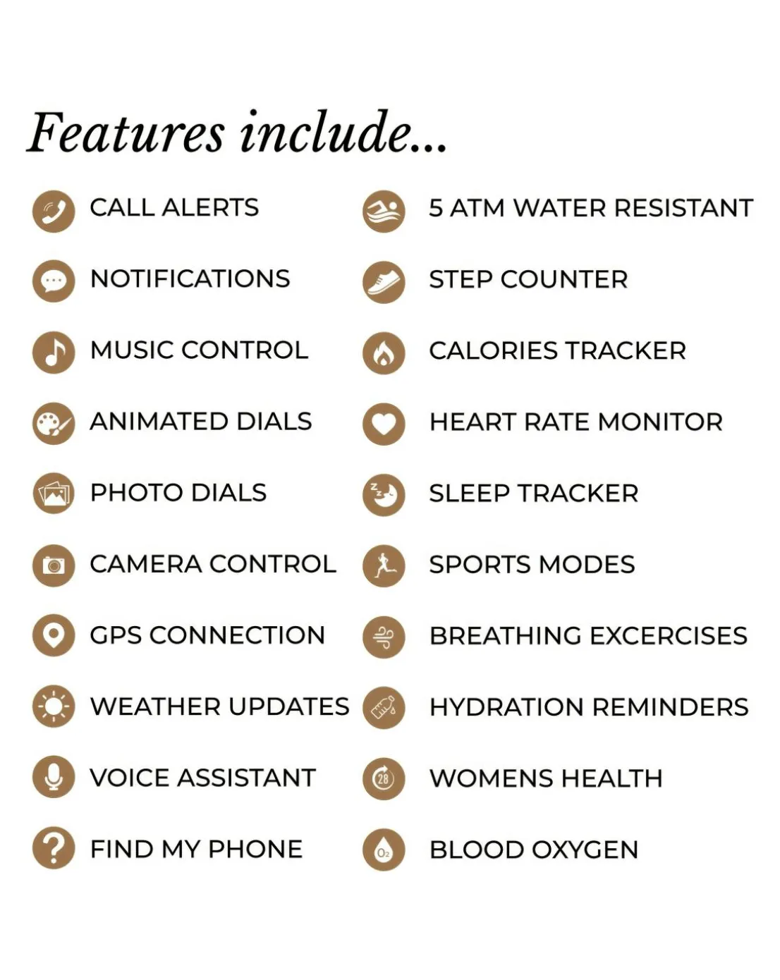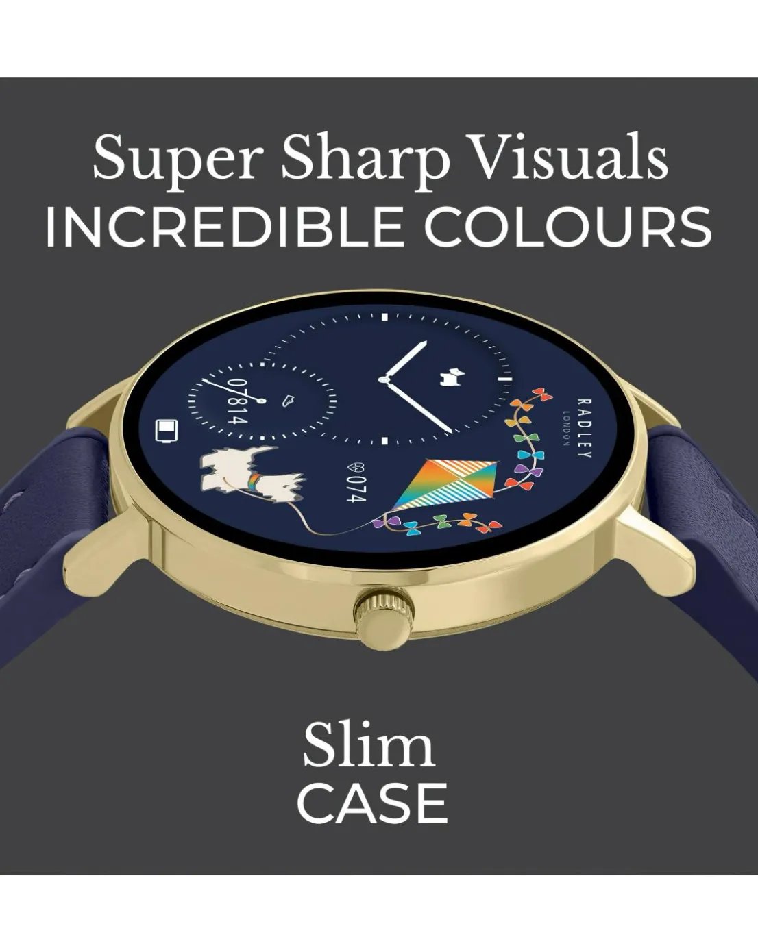 Experience Radley London in high definition, with our Series 28 Amoled smartwatch. Enjoy the amazing collection of exclusive dials this smart watch has to offer on a 1.19” display with exceptional clarity & colour reproduction. Innovative additional benefits include Always-On display, meaning you no longer need to touch your watch or lift your arm to activate the display & our Dual-Time feature shows the time home and away, to ensure you always keep on track whilst traveling. The Series 28 offers all the lifestyle & wellness features you need, including helpful health benefits like step count, heart rate monitor, blood oxygen, cycle tracking, calories, sleep analysis and so much more at your fingertips. Stay connected & on top of your day with call, message and social notifications, music control & GPS connection. Personalise your watch with an incredible choice of exclusive Radley London dials, including animated displays featuring your favourite Scottie dog! Or for a truly unique display, use a photo from your phone gallery. The petite 38mm pale gold case is complimented by an adjustable strap, innovatively tailored from genuine leather with a soft-silicone backing, delivering durable comfort. Our 5ATM water resistance rating makes this smart watch the perfect partner for swimming, or any other of the 14 activities this smart watch will help you track! Our smart watches are presented in a gift box complete with instruction manual, USB and a 2-year guarantee. Download the free Radley London App to enjoy additional functionality. IOS 12+ & Android 6.0+ Compatible.