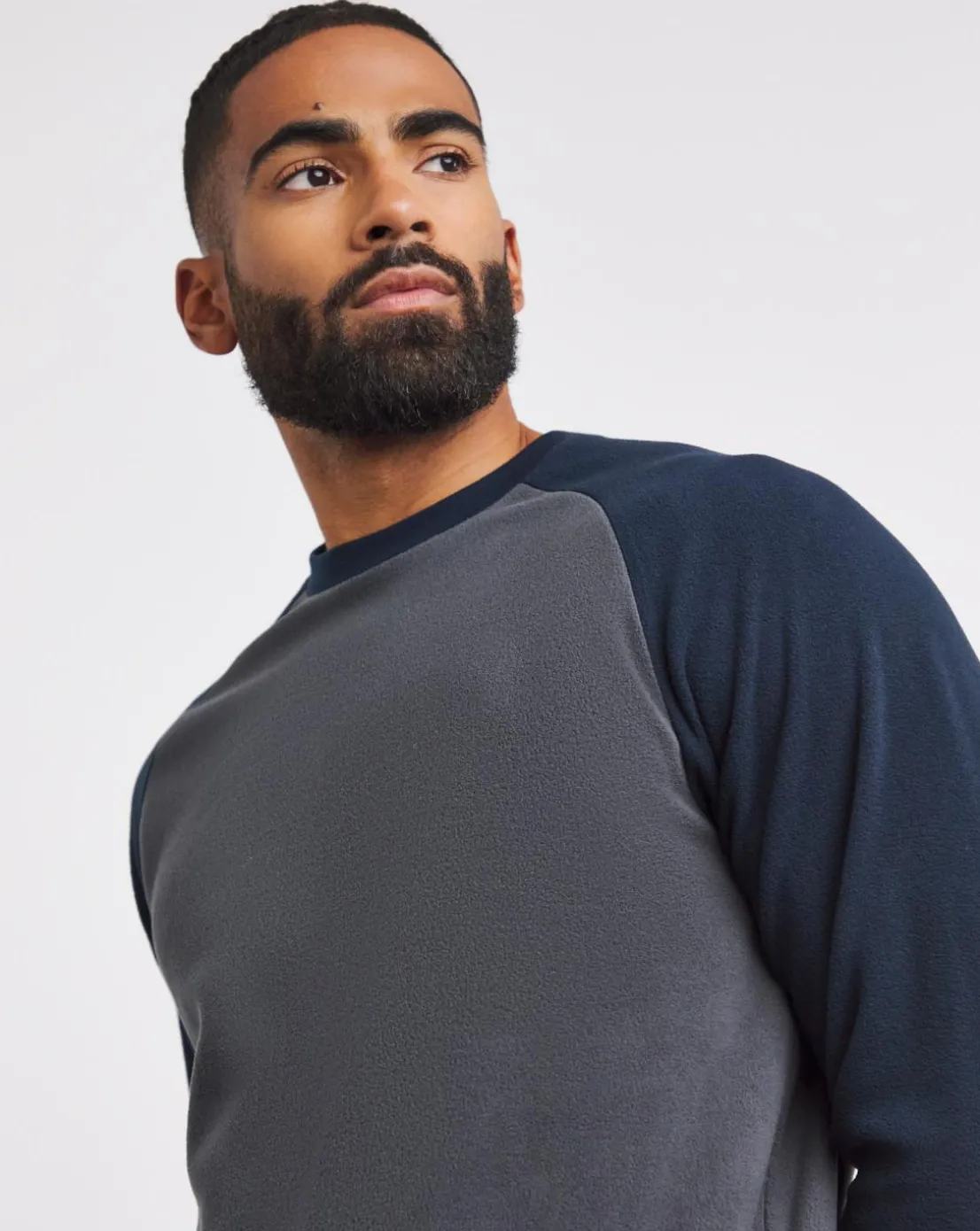 The Jacamo Raglan Micro Fleece PJ Set in Navy /Grey mix.