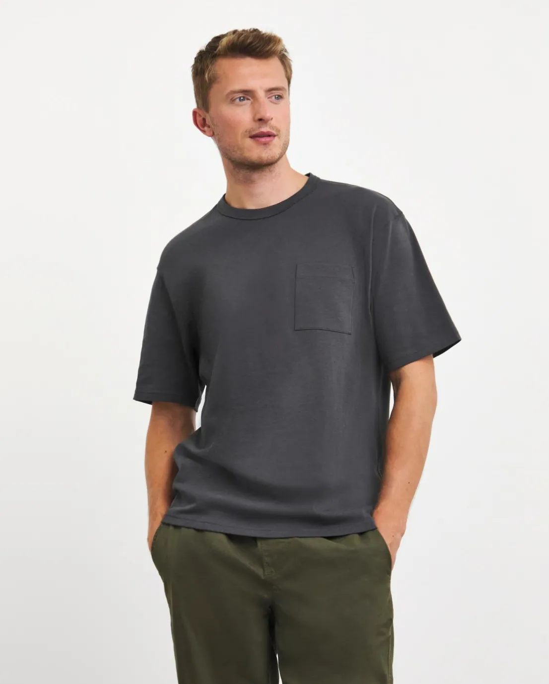 This Heavyweight Relaxed Fit T-shirt in Charcoal has pocket detailing and a cotton composition for your best comfort. Model is 6’1 and wears a size M.