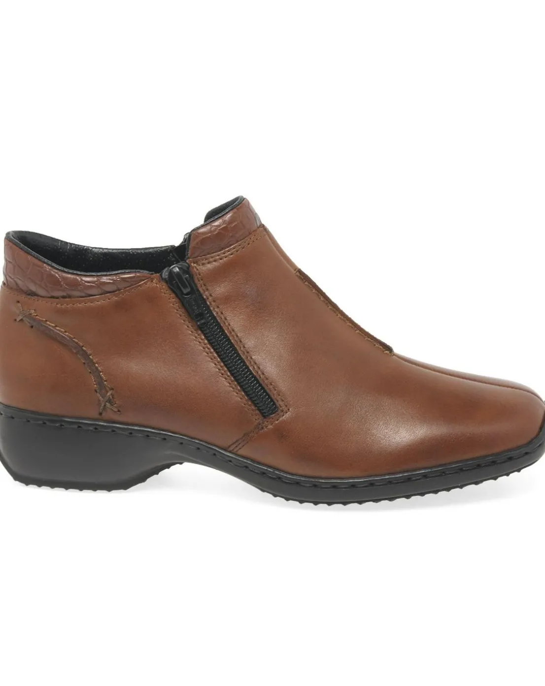 - The Rieker Drizzle are a stylish pair of women’s ankle boots to add to your collection this season. Featuring zip fastenings for an easy on and off and small elevated 3cm heel to add a touch of sophistication to any outfit. With smooth leather uppers complete with contrasting padded collar and stitching for an added stylish look.Please note: Riekerfootwear is designed for comfort and durability. The construction of Rieker shoes means that we cannot guarantee the waterproof properties of the products – unless expressly stated.