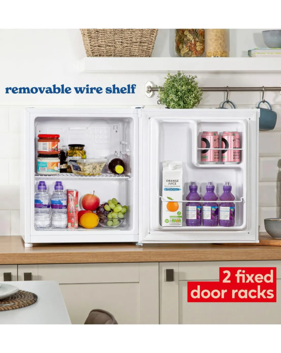 The Russell Hobbs 40L Larder Fridge is perfect if you need extra fridge space. With its compact size and classic design, this appliance can fit neatly on any worktop, utility or playroom. 40L Capacity. 1 Wire shelf. Manual Temperature Control (0 – 8C). Fixed door bottle rack. Adjustable feet. Reversible door. Power cord length: 1.8m. Energy efficiency performance rating: E. 1 Year Manufacturers Guarantee.