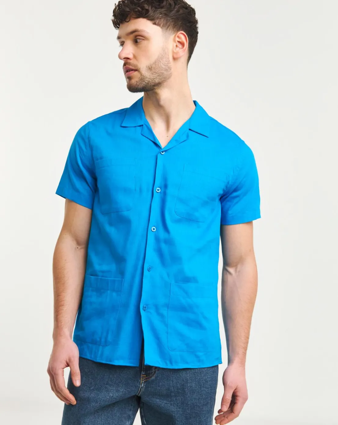 This Jacamo short sleeve 4 pocket cabana shirt in blue is a great shirt to have this season. Pair it with some chino shorts and sandals for a casual look.