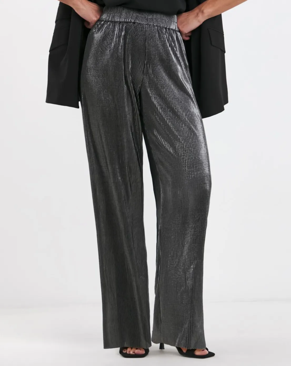Be the first to review “Silver Metallic Plisse Wide Leg Trousers” Cancel reply