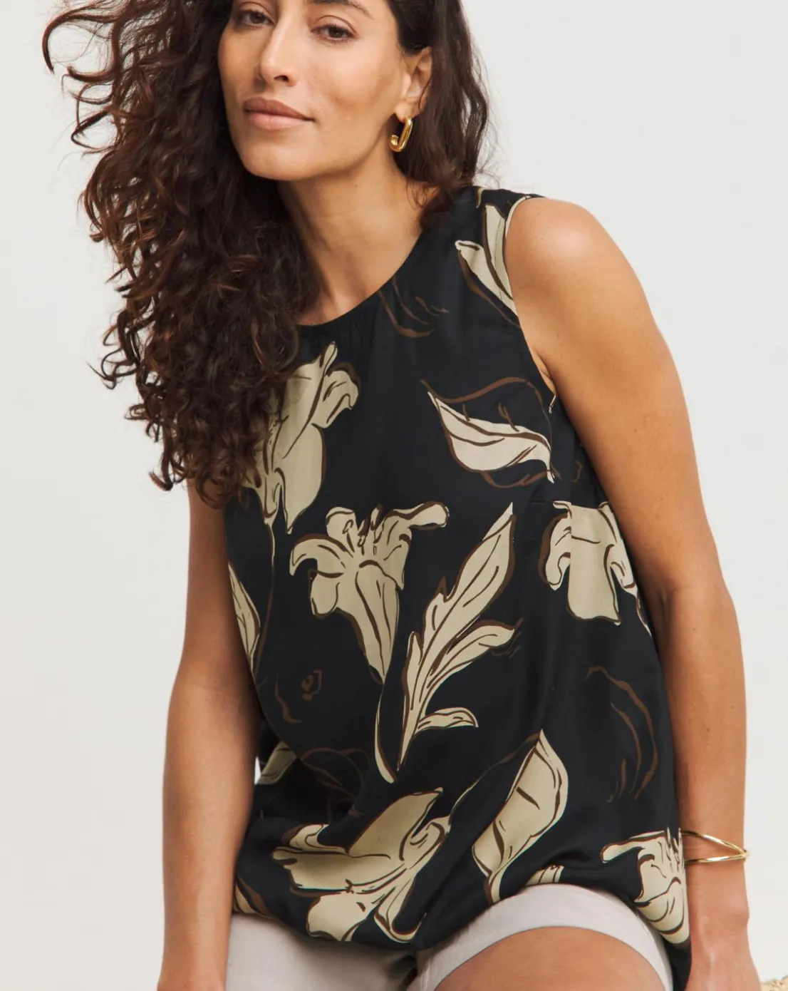 Stay cool and fresh this season in this floral print shell top. Pair it with shorts for a relaxed daytime look, or style it with linen trousers and sandals for a summer’s evening.