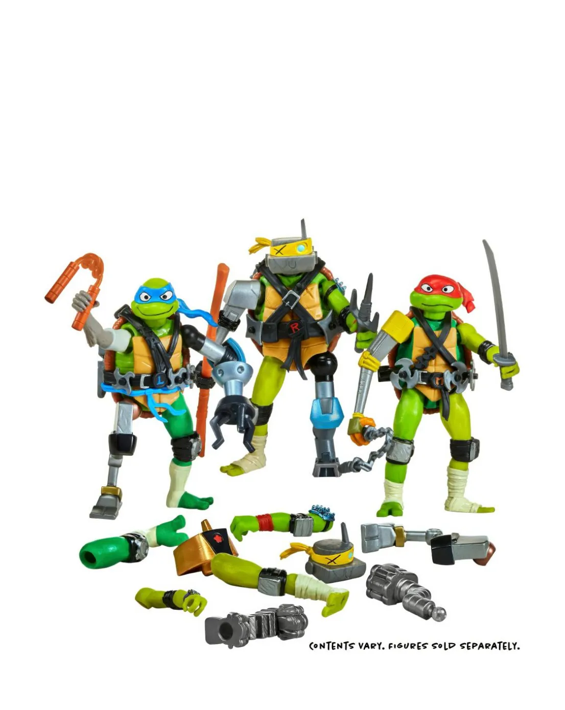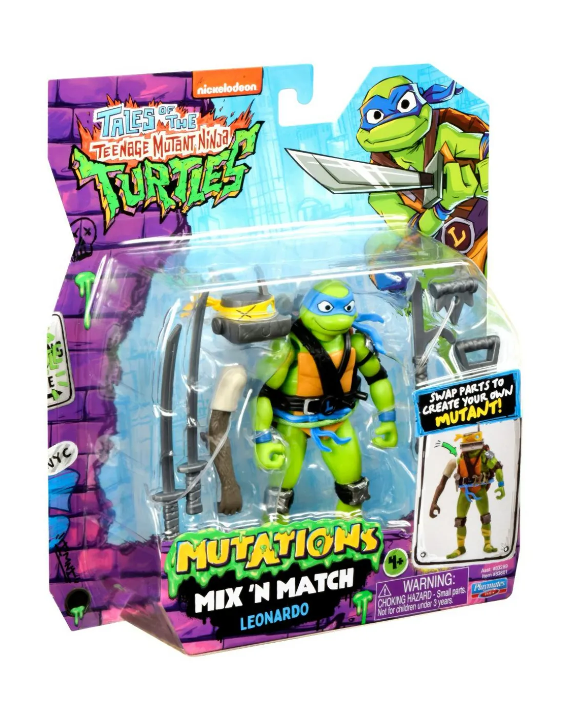 When it comes to the Teenage Mutant Ninja Turtles, there’s nothing they can’t handle together! After defeating a Mega Mutant and going viral, the Turtles become half-shell heroes who attend high school, sick parties, and fights with evil robots! When a robotics engineer chases them down for the sake of humanity and stuff, the Turtles must work together to defeat her – even when they’re split apart. Mix and Match Leonardo figure stands 4.5-Inches tall and is authentically sculpted to match his character in Tales of a Teenage Mutant Ninja Turtle. Set includes Metalhead’s head, Splinter’s arm, and Leo’s signature weapons. Use them to turn Leo into a custom mutant, take it all apart, then mix and match again!