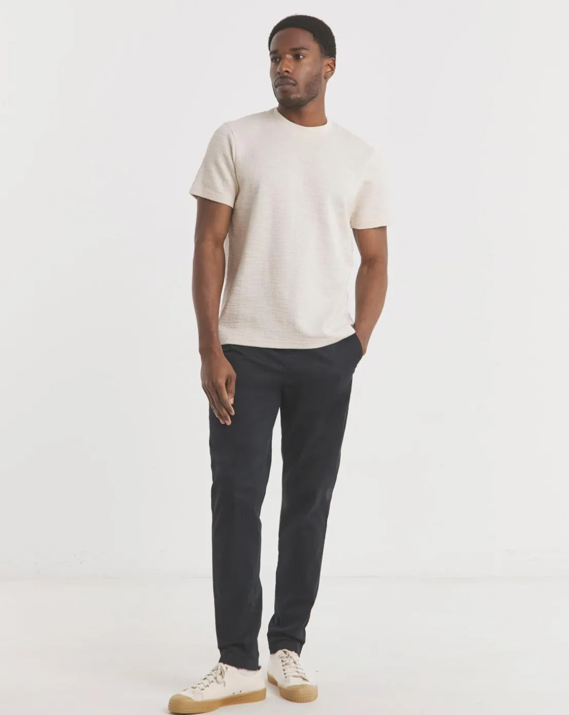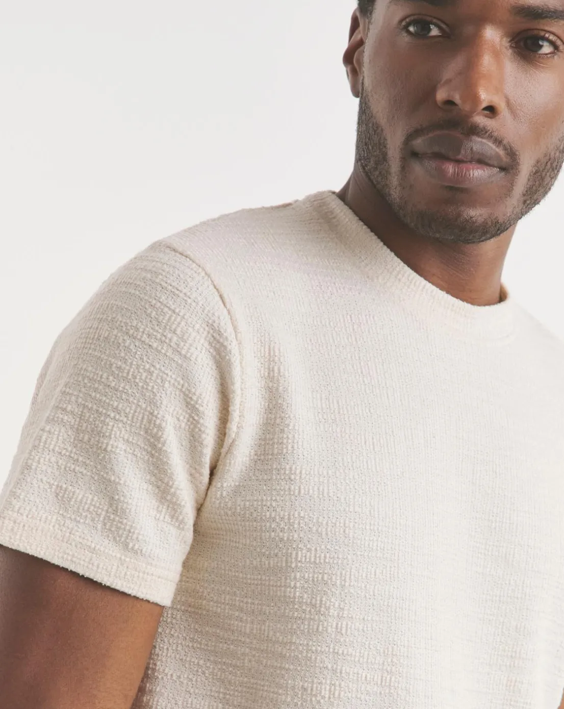 Elevate your casual wardrobe with our Textured Tshirt in soft Ecru,designed for effortless style and comfort.Featuring a subtle textured finish,its perfect for any occasion.