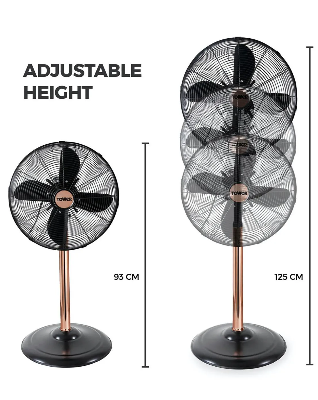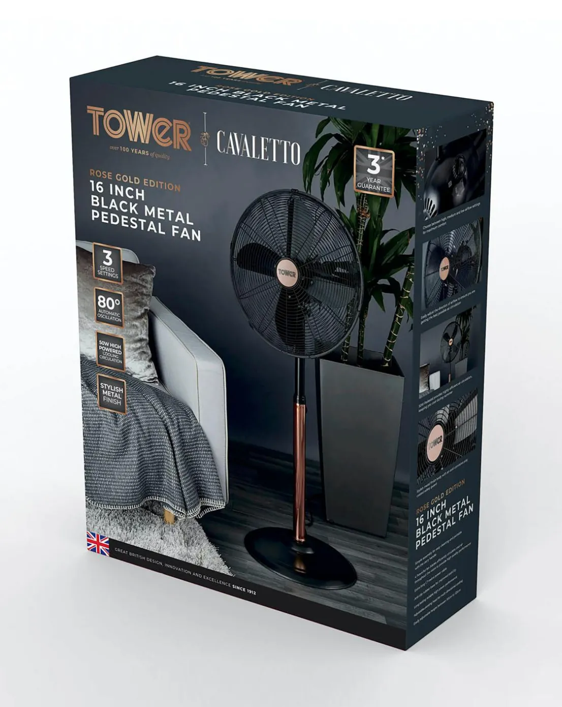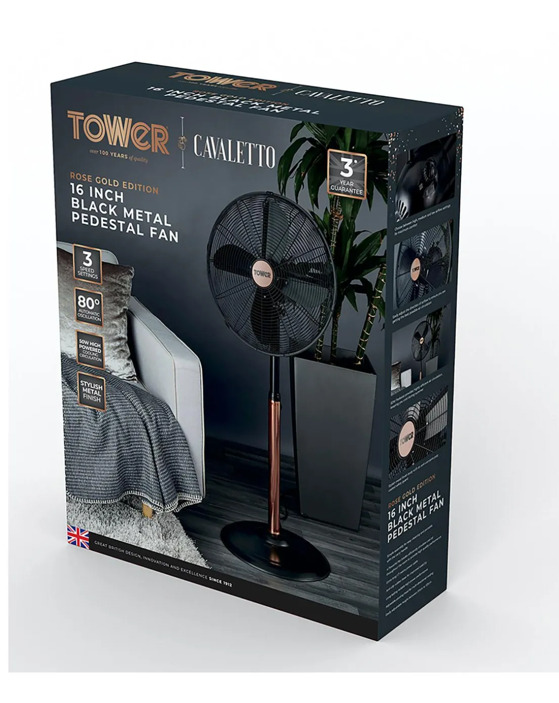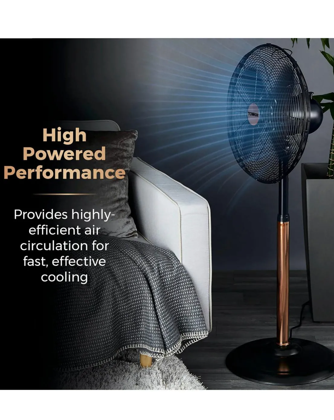 Tower 16 Inch Cavaletto Metal Black and Rose Gold Stand Fan