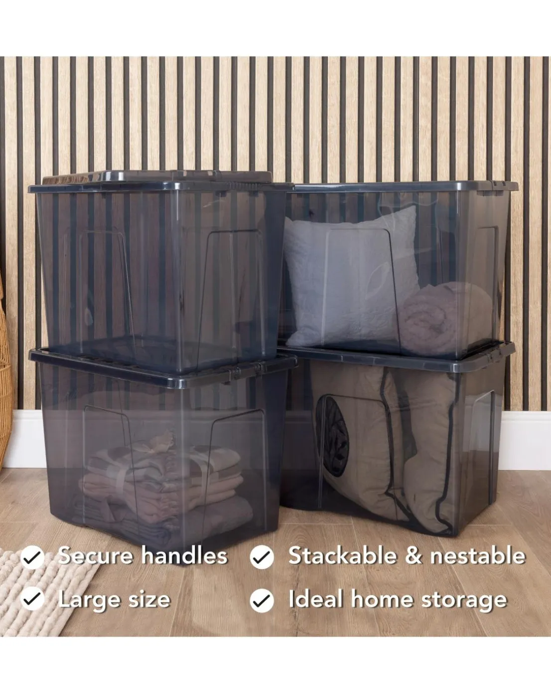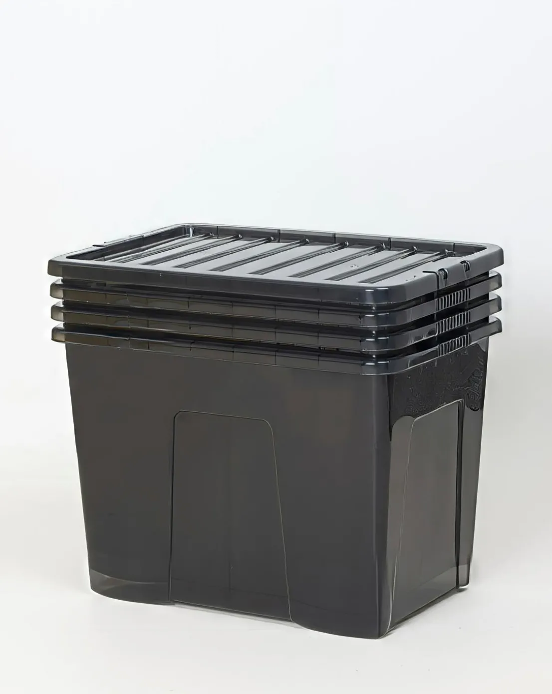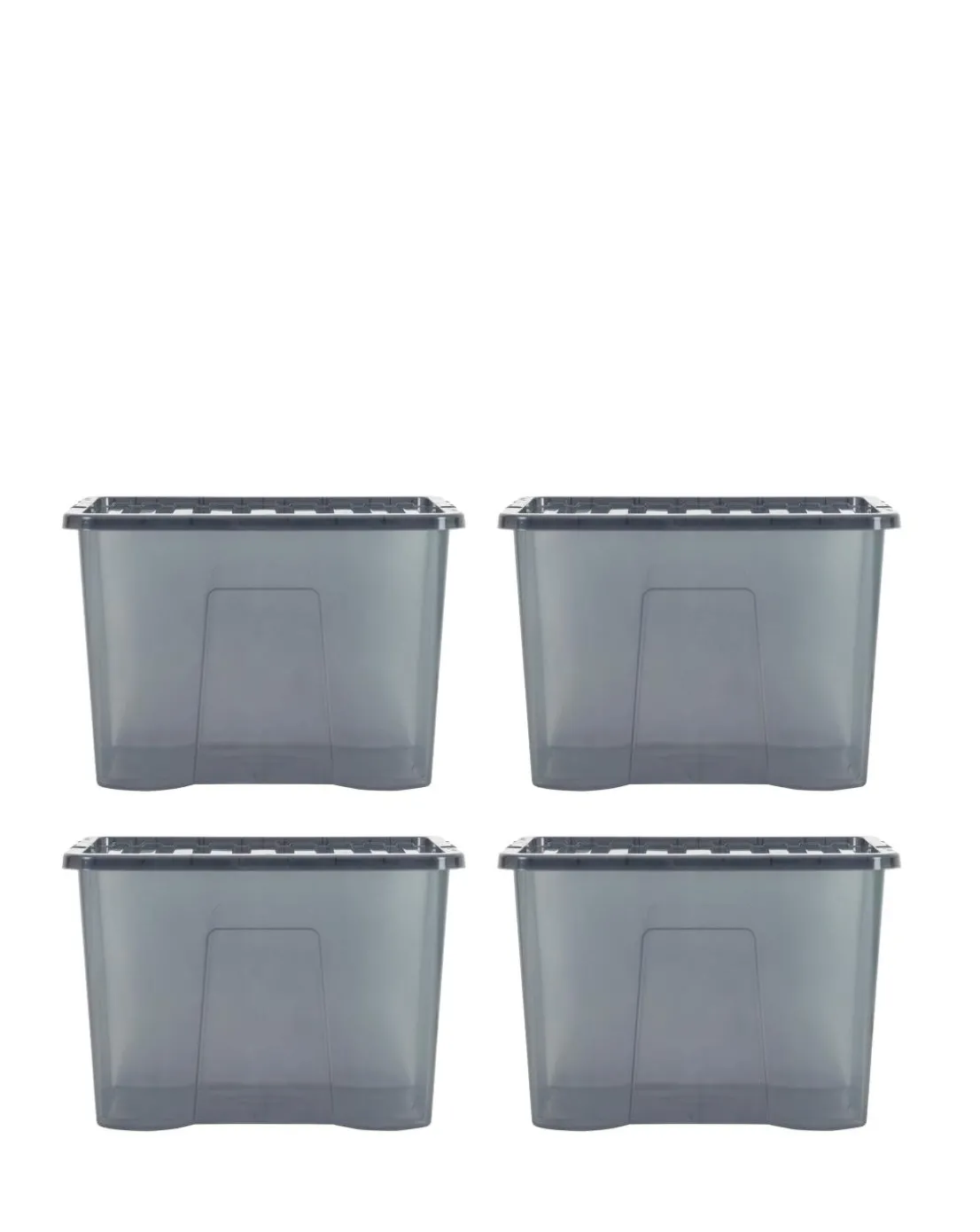 Wham Crystal Smoke Grey 80L Box and Lid 4PK